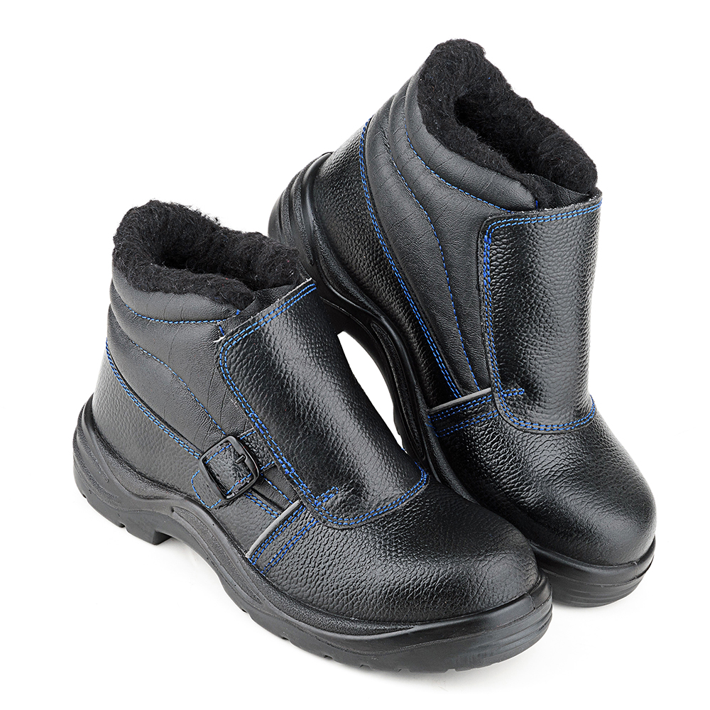 Кожаные ботинки Prosafe серии basic c защитным фронтальным клапаном, препятствующим попаданию искр, предназначены для защиты ног от общих производственных загрязнений в отапливаемых помещениях и на открытом водухе в летний период. Подкладка и вкладная стелька изготовлены из шерстяного меха. Светоотражающие элементы повышают видимость работников в темное время суток, а также на неосвещенной территории. Подошва - двухслойная, маслобензостойкая, литьевого метода крепления. Промежуточный слой изготовлен из ПУ с внутренней амортизирующей вставкой в пяточной части подошвы, способной гасить ударные нагрузки при ходьбе. Ходовой слой- износостойкая термостойкая нитрильная резина, способная защитить стопу от кратковременного контакта подошвы с нагретой поверхностью до 300°С. Композитный подносок обеспечивает защиту пальцев стопы от механических повреждений ударной прочностью до 200Дж.