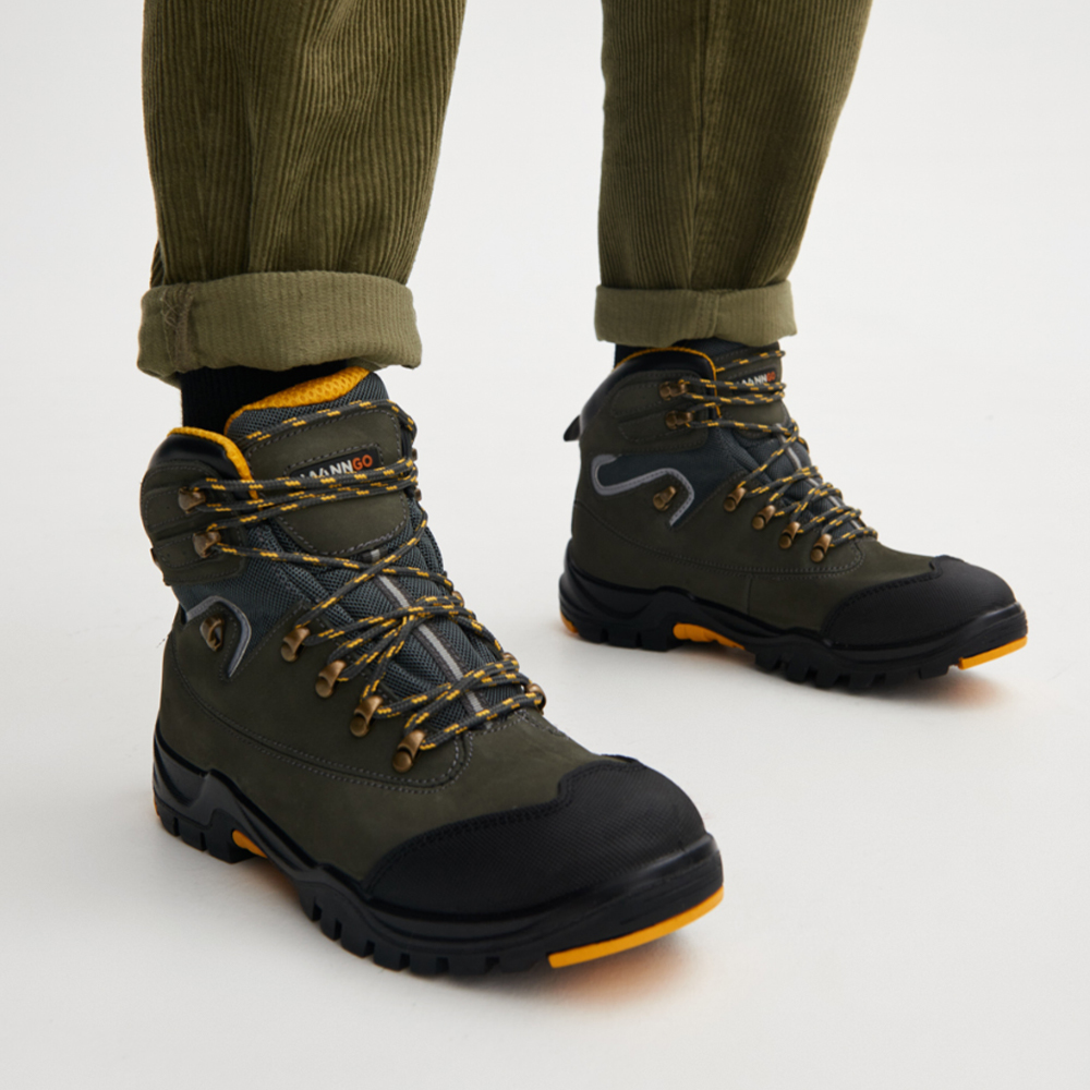Мужские ботинки WANNGO из натурального нубука предназначены для активного отдыха и повседневных прогулок по городу. В конструкции верха предусмотрен "глухой" клапан, обеспечивающий защиту стопы в обуви от попадания посторонних предметов, пыли и пр. Водонепроницаемая и «дышащая» подкладка с мембраной WG-TEX обеспечивает идеальный комфорт даже в сырую погоду. Вкладная стелька Smart Insole комфортно поддерживает стопу и обладает амортизационными свойствами. Для защиты от механических повреждений носочная части ботинка имеет накладку из полимерного материала ТПУ. Двухслойная подошва с промежуточным слоем из пористого полиуретана облегчает вес ботинка, сохраняет тепло и снимает нагрузку во время ходьбы. Литьевой метод крепления верха к подошве гарантирует водонепроницаемое соединение. Нижний ходовой слой выполнен из резины с глубоким протектором создает надежное сцепление с грунтом и препятствует скольжению. Рекомендуемый температурный режим: от 5 до -10 градусов.