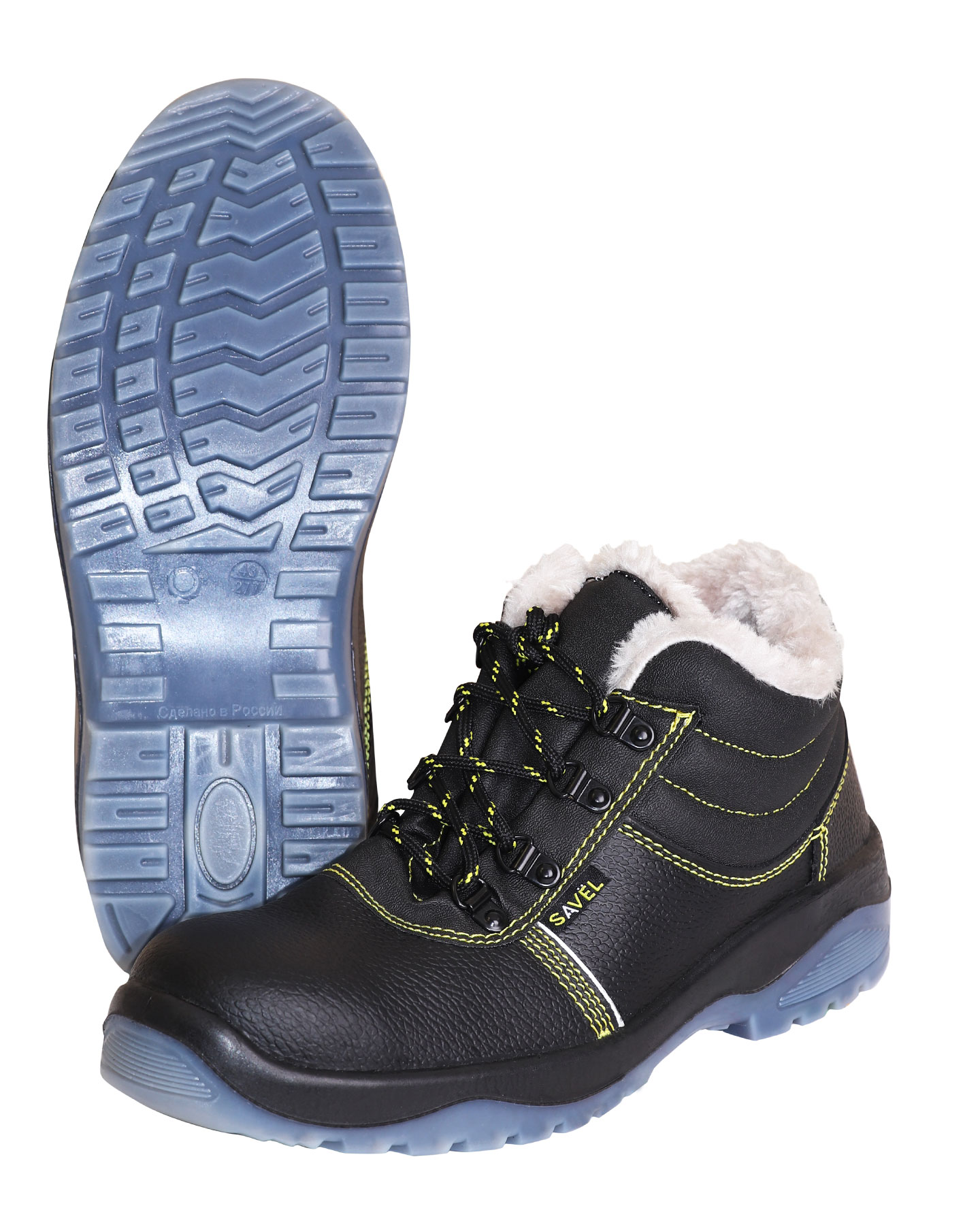Верх обуви изготовлен из кожи со специальным покрытием для защиты от ОПЗ, МВ, МВО. Застежка на шнурок и металлические петли. Подошва двухслойная ПУ/ТПУ: полиуретан обладает амортизирующими свойствами, гасит ударные нагрузки, а также придает обуви лёгкость, комфорт и повышенные теплозащитные свойства. Термополиуретан обладает гибкостью и прочностью, поэтому обувь с подошвой из этого материала прослужит долго. Литьевой метод крепления подошвы обеспечивает с верхом обуви единое целое, в результате достигается полная герметичность в месте литья. Такой метод крепления является самым прочным и долговечным на сегодняшний день. Подошва сохраняет свои свойства в широком диапазоне температур и обладает стойкостью к воздействию масел, сырой нефти, нефтепродуктов. Мягкий кант деликатно обхватывает щиколотку, обеспечивает комфортное облегание и боковую поддержку, защищает от возможных боковых ударов, препятствует проникновению грязи и пыли внутрь обуви. Подкладка в утеплённых ботинках серии "SAVEL-Профи" выполнена из искусственного меха. Верх ботинка имеет контрастные отделочно-скрепляющие строчки жёлтого цвета. Колодка обладает полнотно-размерными характеристиками защитной обуви, предназначенной для эксплуатации в зимний и весенне-осенний периоды, даёт возможность работать полный рабочий день с комфортом и без усталости. Обувь предназначена для работы в нефтегазовой, горнодобывающей, энергетической, химической промышленности, на транспорте, в агропромышленном комплексе и сервисных службах.