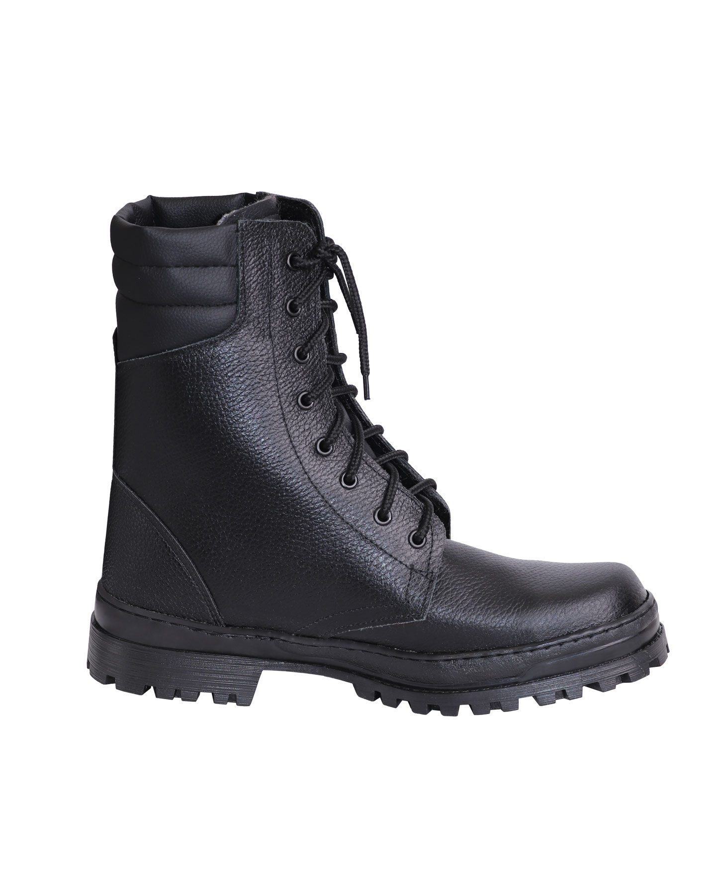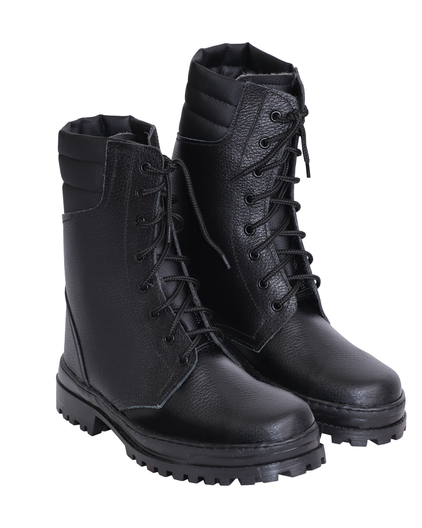 Ботинки хромовые с завышенными берцами, увеличенным мягким кантом и глухим клапаном, усиленным подноском и жестким задником из термопластического материала.