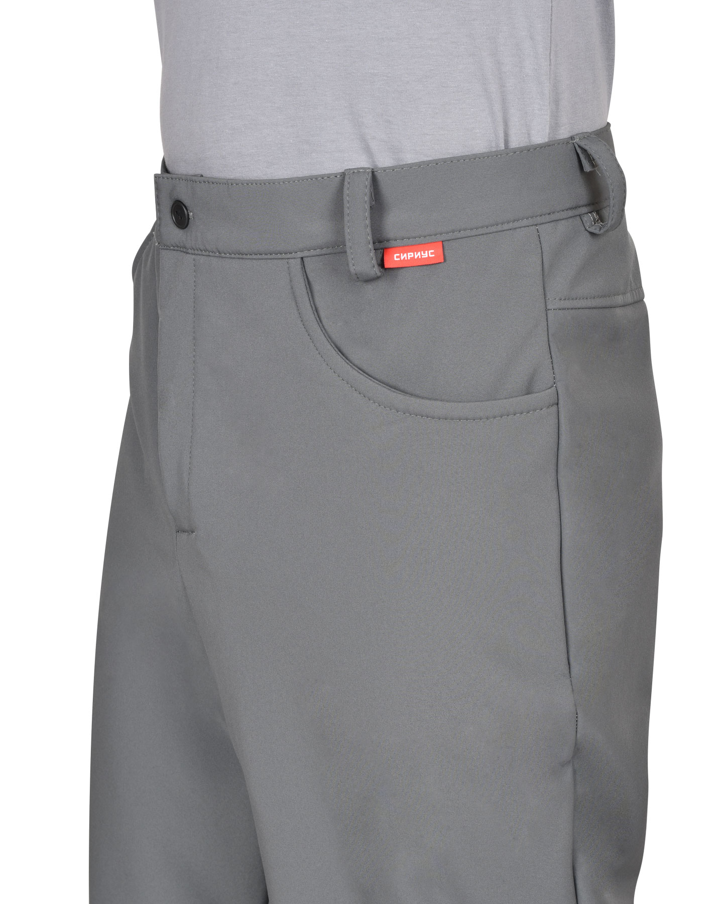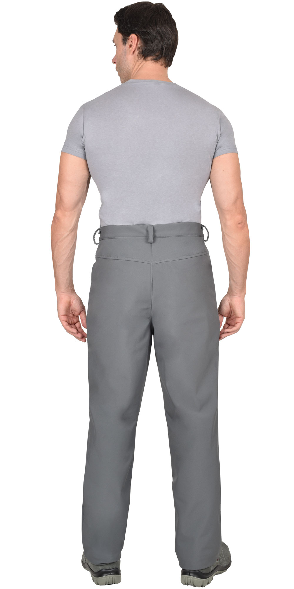 Брюки прямые, на притачном поясе, с застёжкой спереди гульфик на тесьму «молния». Брюки с боковыми внутренними карманами фигурным входом, на задних половинках с отрезной кокеткой. Ткань верха - «Софтшелл» состав: 100% п/э.; пл. 350 г/м ГОСТ 25295-2003