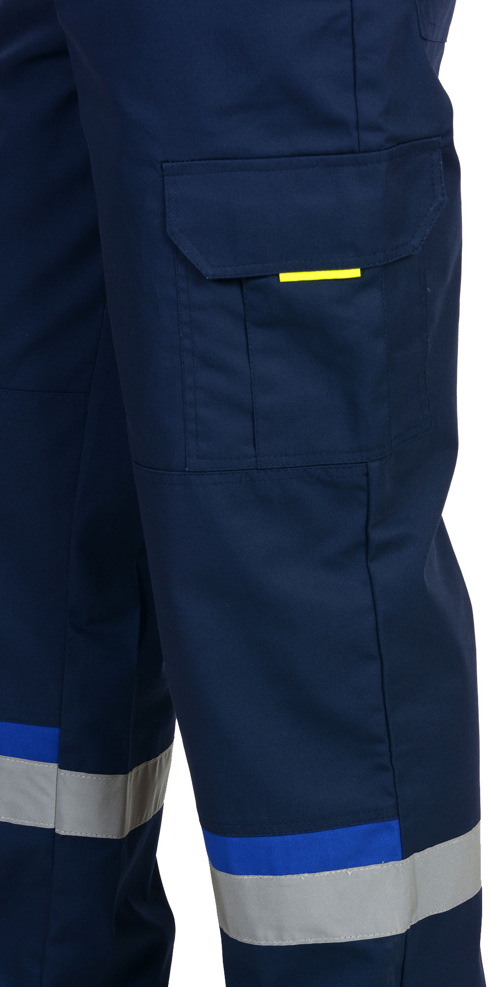 Брюки с застёжкой спереди на молнию, с внутренними боковыми карманами, с наколенниками, с накладным карманом на левом боковом шве с клапаном на липучке с патой, с двумя карманами на задних половинках и карманами для инструментов. По низу брюк настрочена СОП.