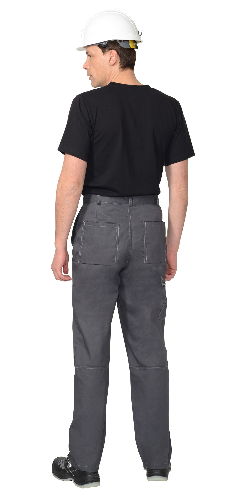 БРЮКИ " прямого покроя; с центральной застежкой гульфика на тесьму - «молния», с притачным поясом, застёгивающимся на кнопку; Передние половинки с внутренними боковыми карманами с наклонным входом, нижние углы карманов закреплены закрепками отделочными нитками и хольнитенами. Задние половинки с двумя накладными карманами с нижним объемом. На правом боковом шве брюк настрочен карман, с горизонтальным входом в карман, застёгивающийся на металлическую тесьму «молнию».