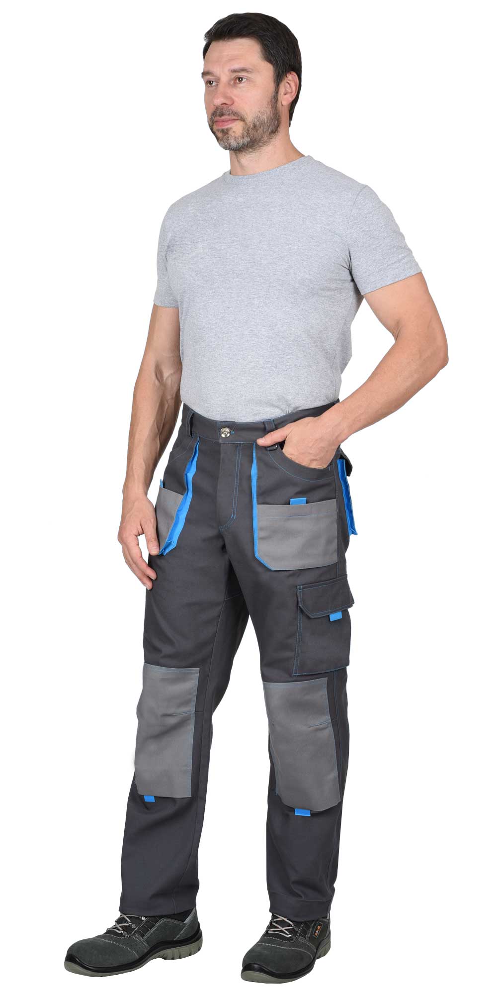 Брюки "Двин" т.серые со средне серым и голубой отделкой (ЧЗ) (104-108/170-176)