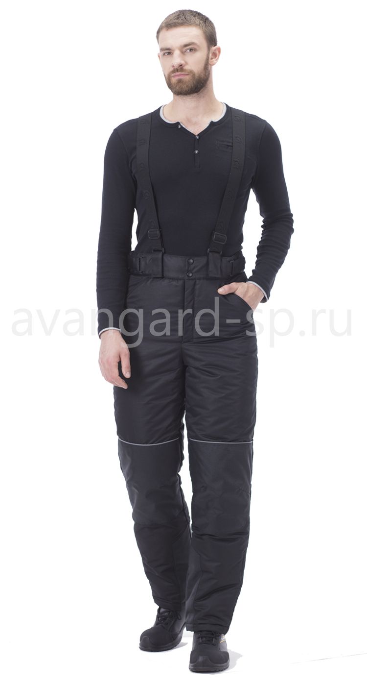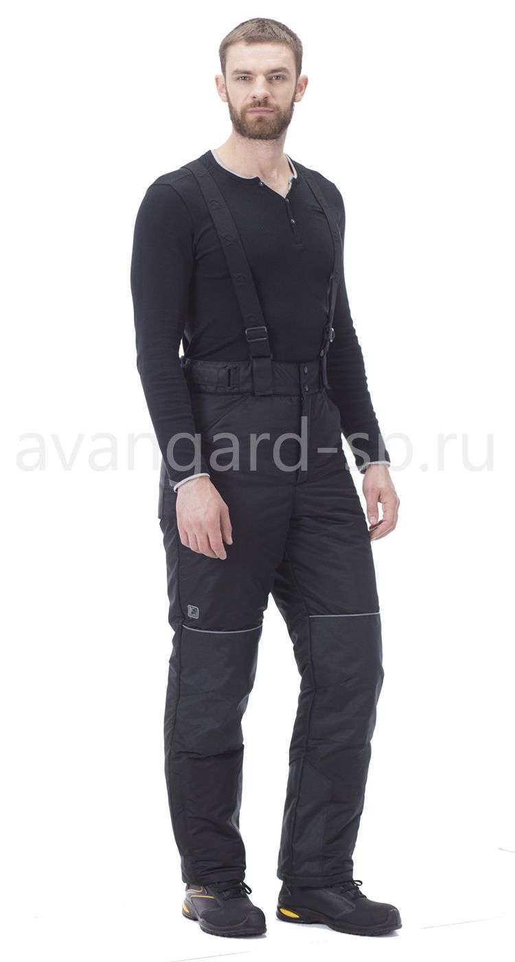 Брюки мужские утепленные со съемными утепленной спинкой и эластичными бретелями с регулировкой по длине.
