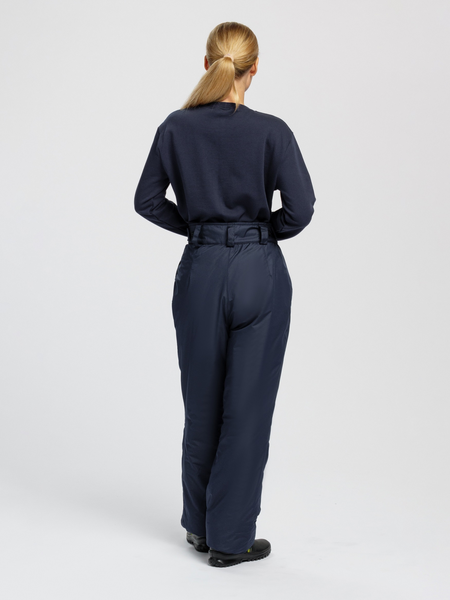 Брюки женские зимние «Снежана» подходят для рабочей деятельности и повседневной носки при низких температурах до -25 ℃. Зимние брюки производятся из плотной ткани «таслан», отличаются легкостью, прочностью и длительным периодом эксплуатации. Мембранное покрытие водонепроницаемостью 8000 мм и влагоотталкивающая пропитка не дают промокнуть даже в сильный снегопад или дождь, отлично защищают от загрязнений. Высокий пояс брюк закрывает спину от сквозняков и препятствует переохлаждению поясничного отдела позвоночника, а утеплитель синтепон замечательно сохраняет тепло. Зимние штаны женские дополнены вытачками на коленях и в области талии, благодаря чему не стесняют движения. Пояс брюк регулируется по объему с помощью пат на пуговицах и обеспечивает комфортную посадку по фигуре. Для хранения личных вещей предусмотрены передние боковые карманы.