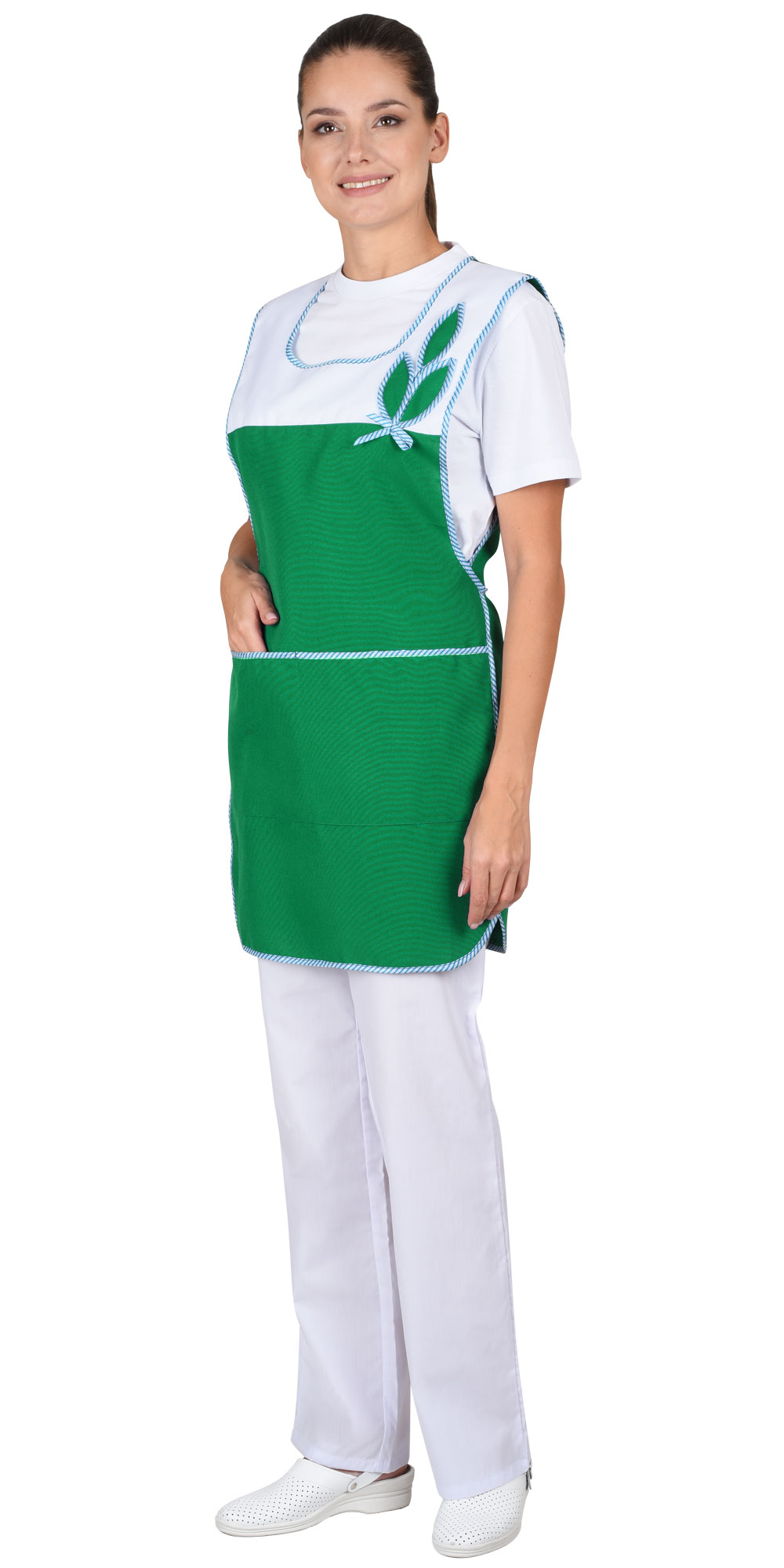 Фартук-сарафан "ВЕСНА"  зелёный с белым (ЧЗ)
