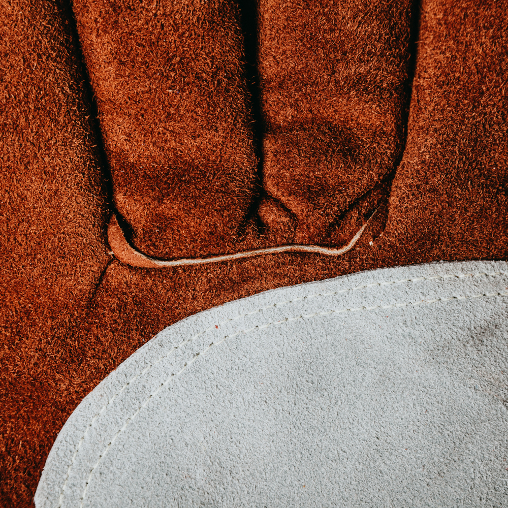 Все швы полностью усилены кожаным кантом для защиты от искр и выплесков металла;