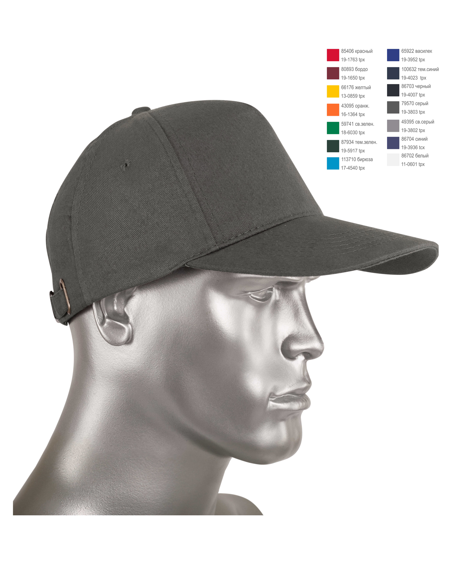 Кепи-бейсболка выполнена из текстильной ткани диагонального переплетения плотностью 200-210 гр/м2, 100% хлопок.
