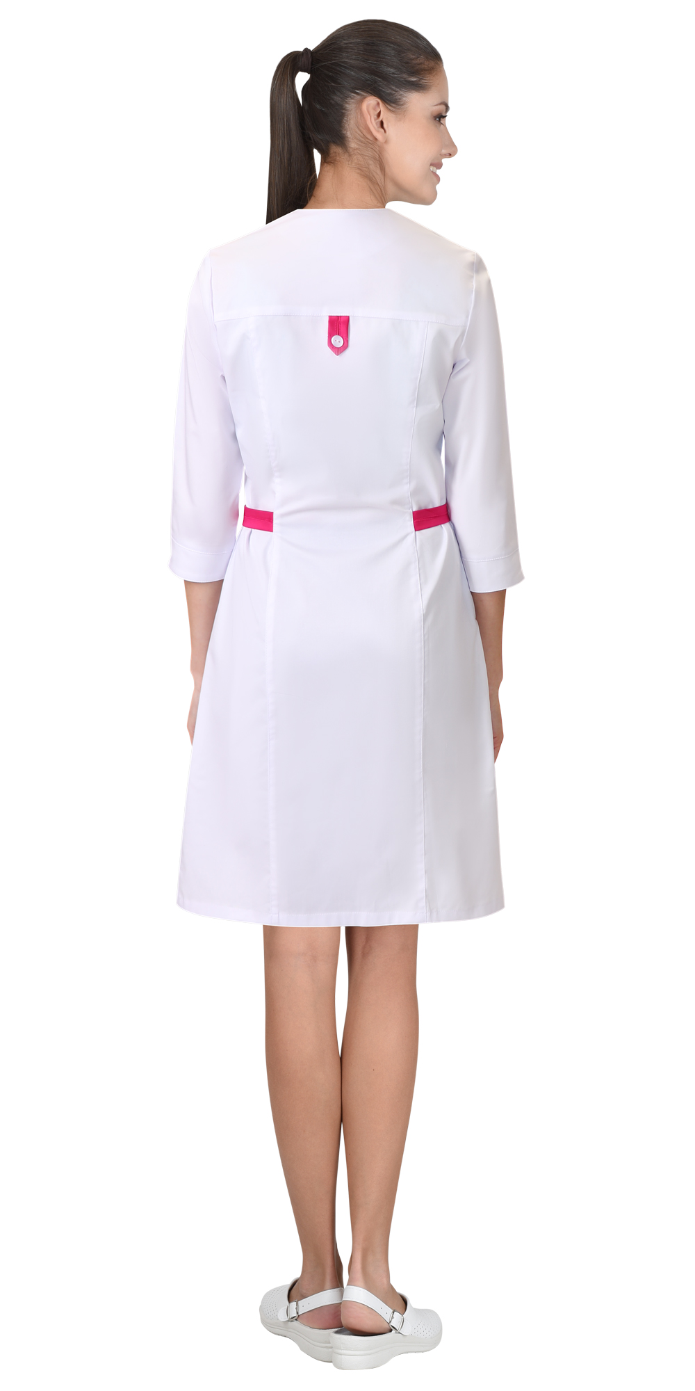 Халат "БРАЙТЛИ" женский белый с фуксией, тк.Твил стрейч (ЧЗ) ( 88-92/158-164)
