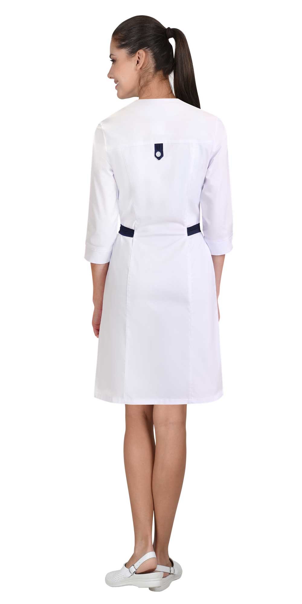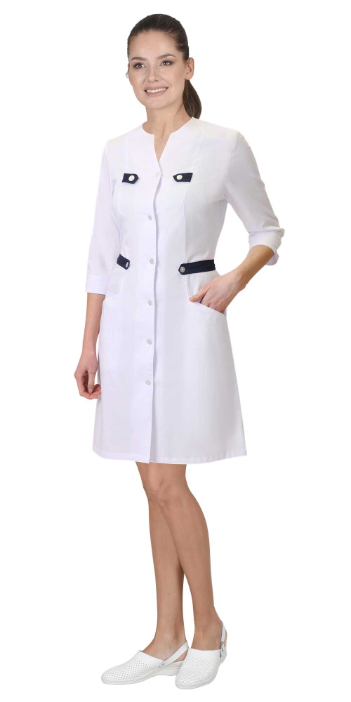 Халат "БРАЙТЛИ" женский белый с синим, тк.Твил стрейч (ЧЗ)
