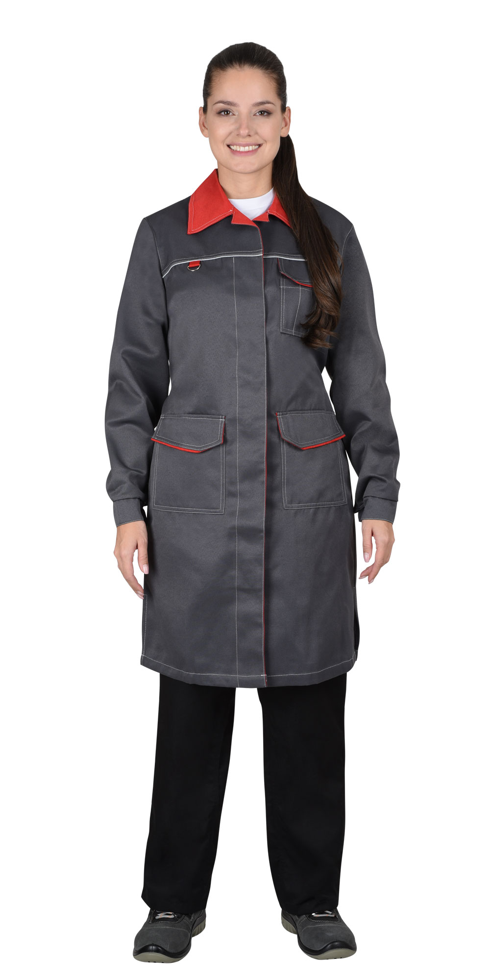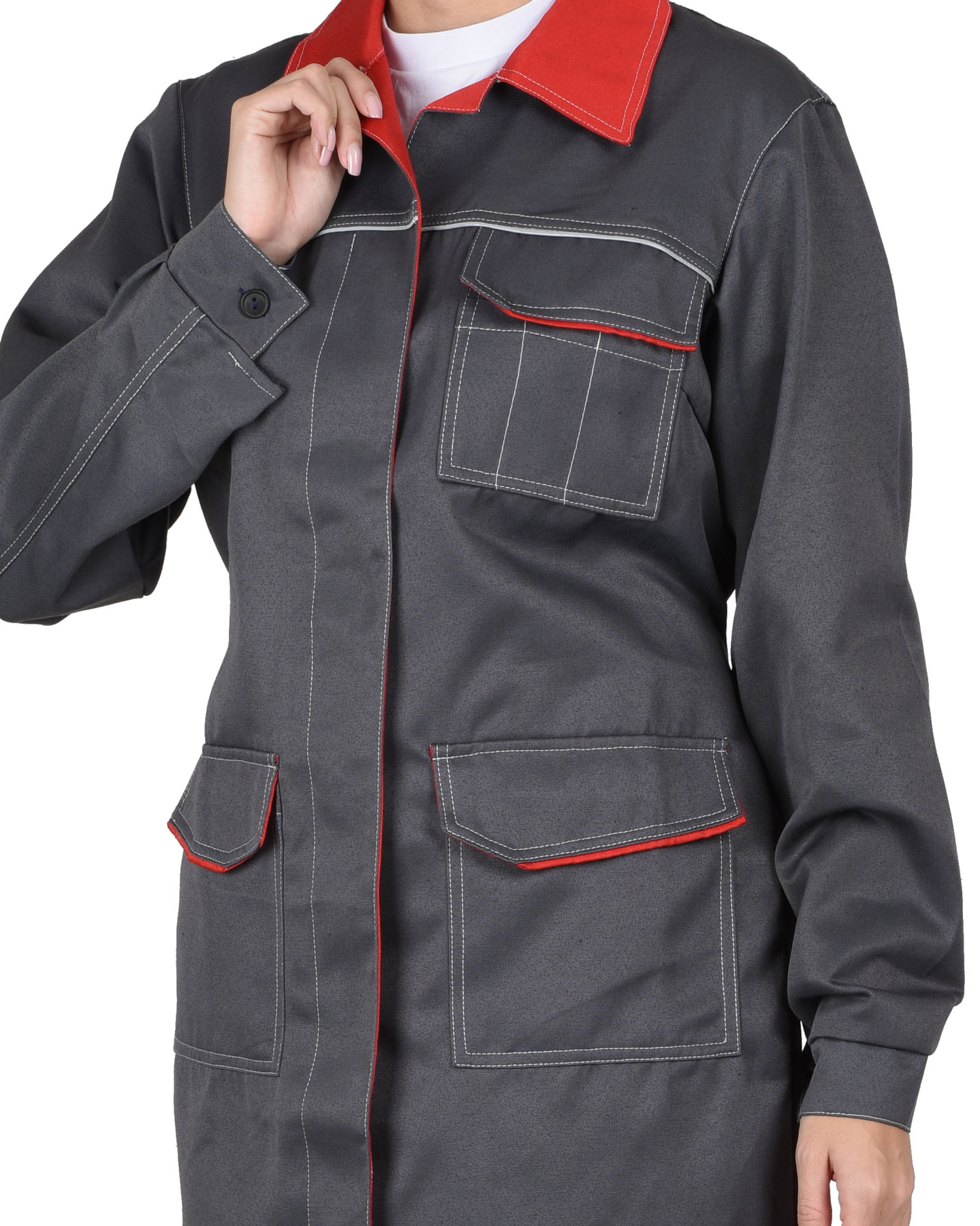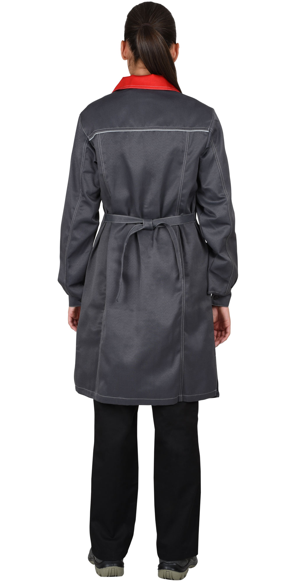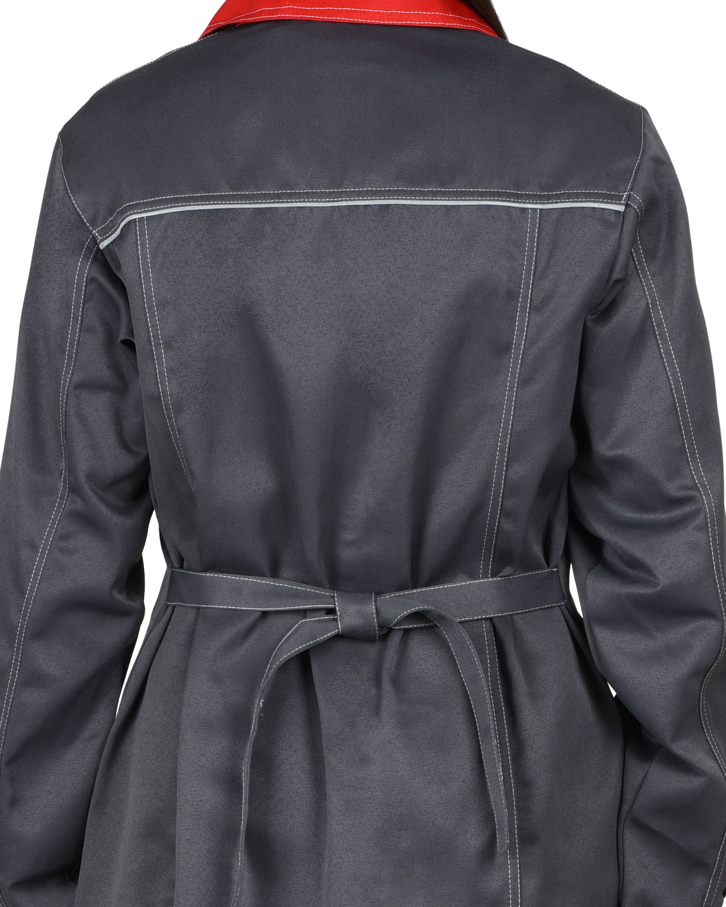 В халате предусмотрен кант СВМ д.3мм светоотражающий 100К для обеспечения сигнальной видимости в условиях пониженной видимости.
