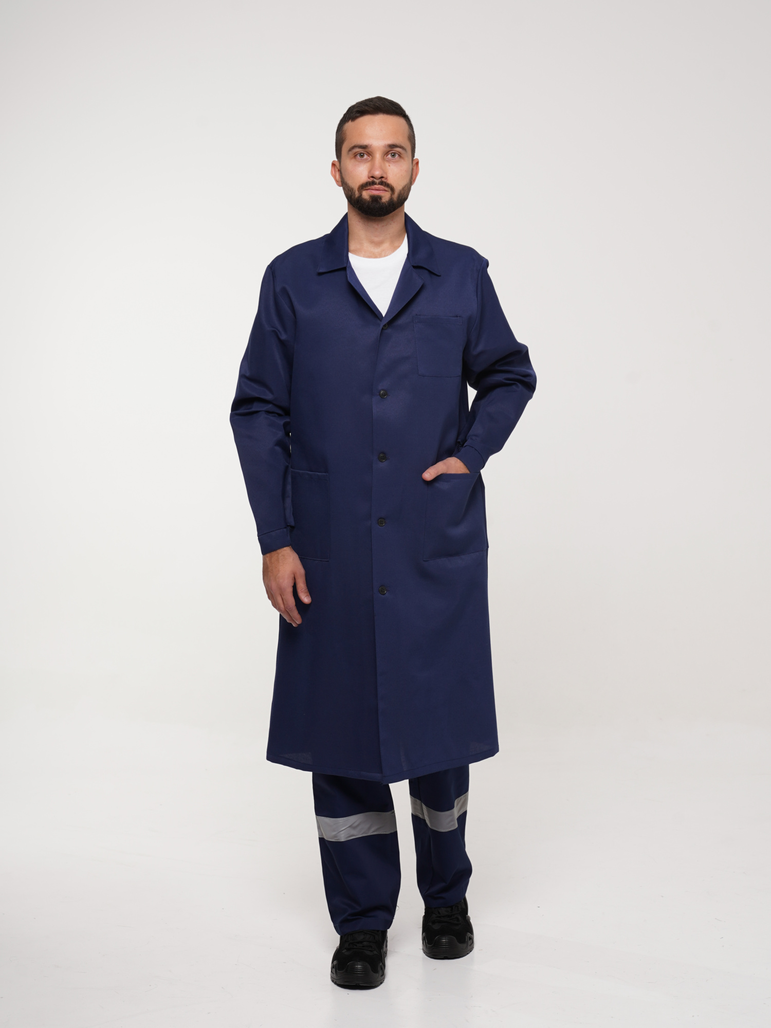 Халат рабочий мужской №204 тёмно-синий (ЧЗ) (120-124/182-188)