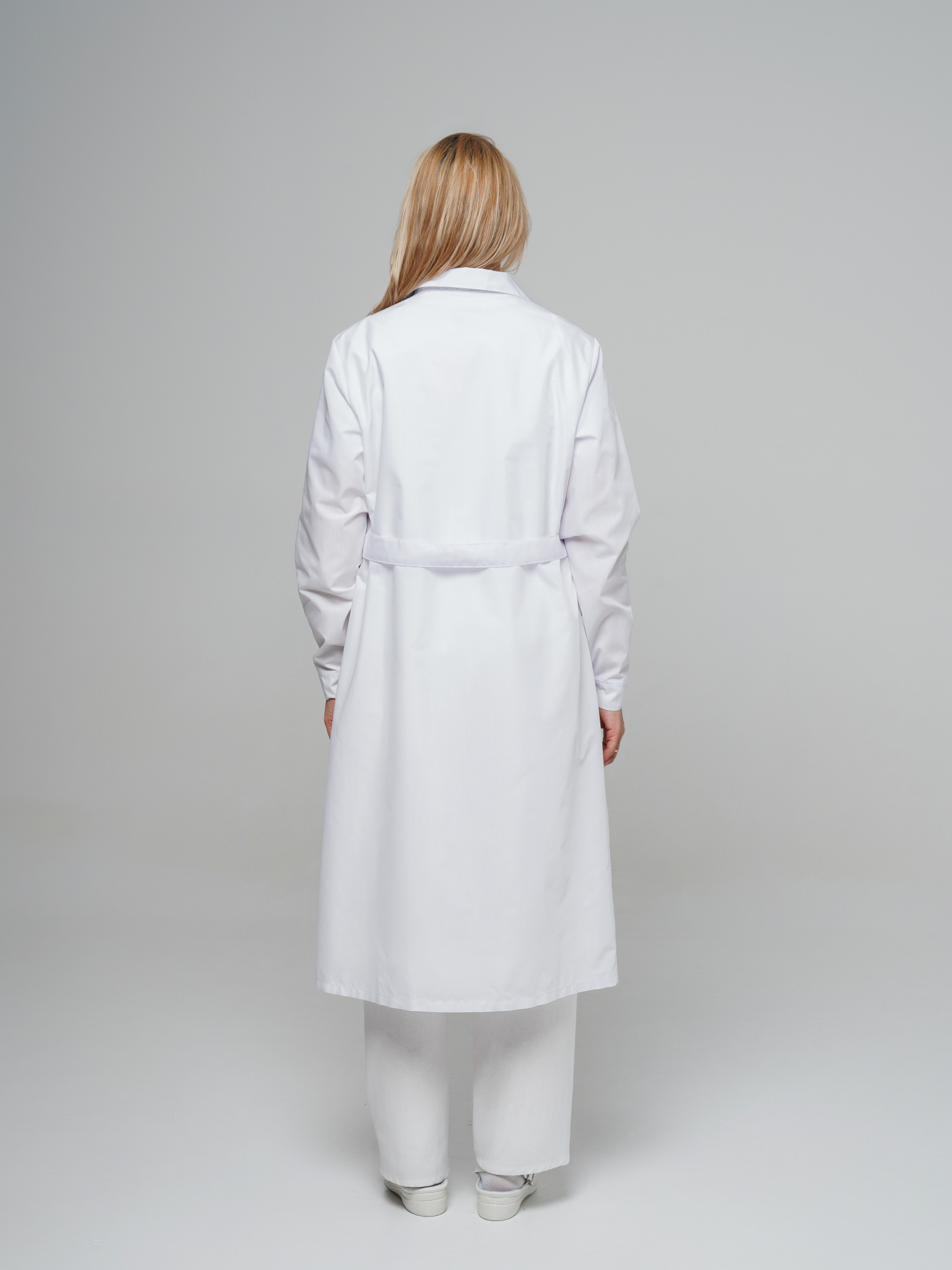 Халат рабочий женский №203 отбеленный, ткань ТИСИ (ЧЗ) (112-116/182-188)