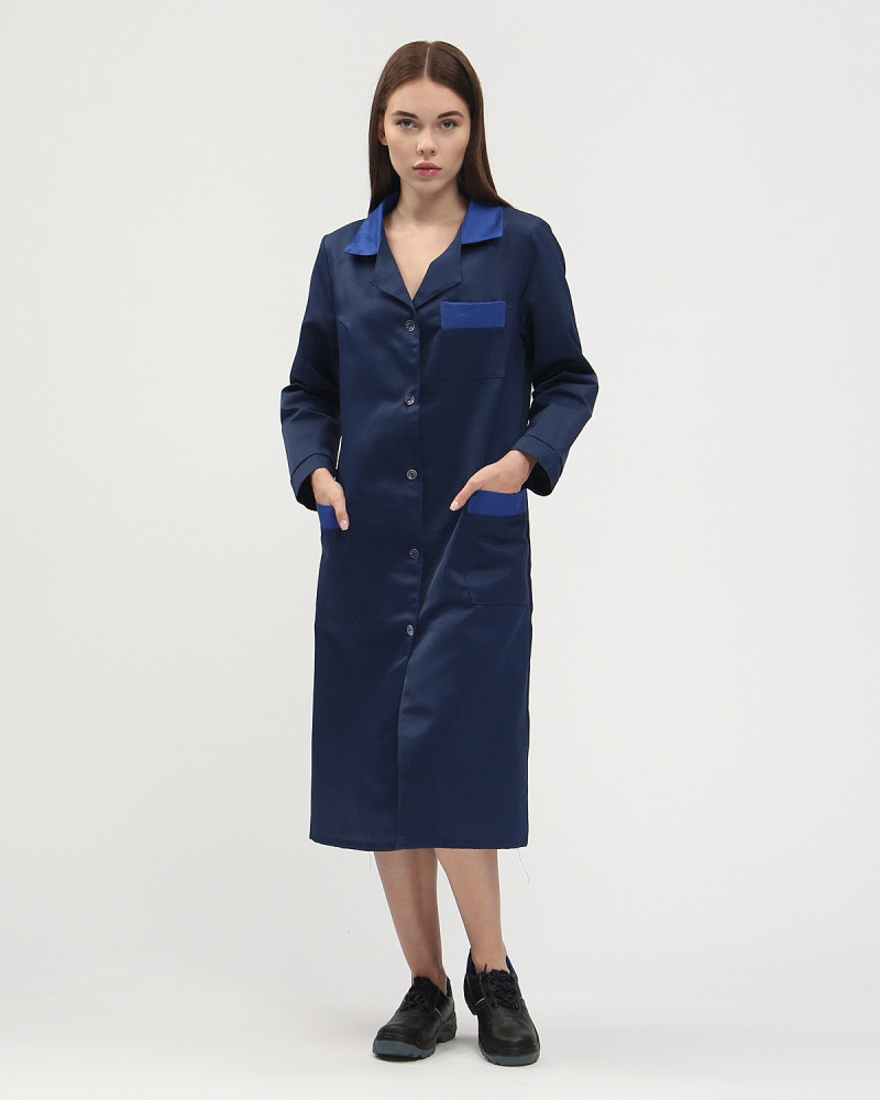 Халат женский Технолог (тк.Смесовая,210), т.синий/васильковый Факел (ЧЗ) ( 96-100/158-164)