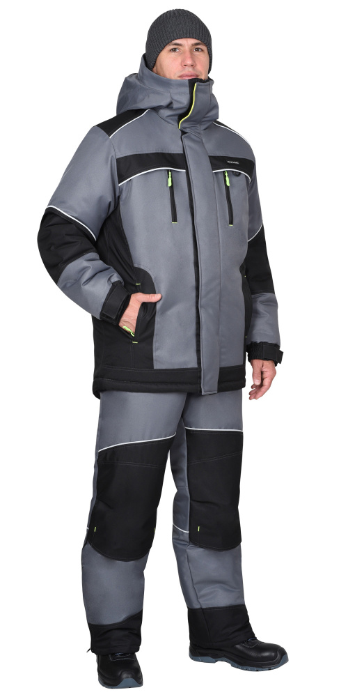 Костюм "АРКТИКА" зимний: куртка дл., брюки, ср. серый с черным (ЧЗ) (112-116/182-188)