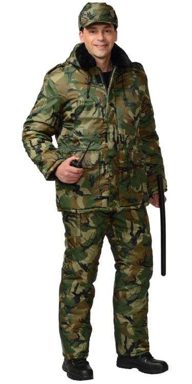 Костюм "Безопасность" (охрана/охранник) зимний: куртка дл., п/комб. КМФ зелёный (ЧЗ) (112-116/170-176)