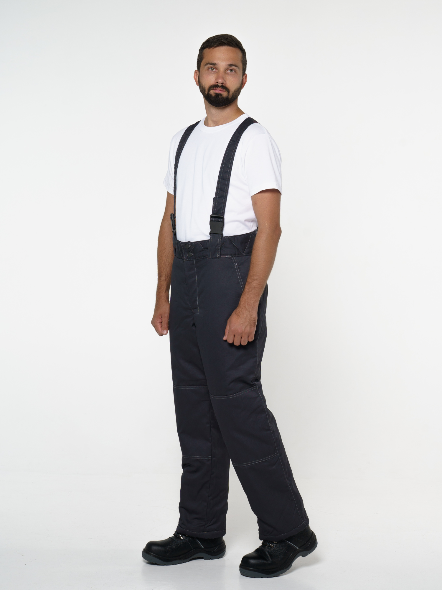 Куртка длинная, с центральной потайной застежкой на "молнию", вшивным ветразащитным клапаном на "липучках" и малыми декоротивными патами из отделочной ткани; внутренней планкой; воротник - "стойка" верхними накладными и нижними внутренними карманами, рукавами, рукава с налокотниками. Брюки с широким поясом, застегивающимся на пуговицы; с застежкой гульфика на "молнию", широкими шлевками держателями фастексов, в области колен наколенниками.