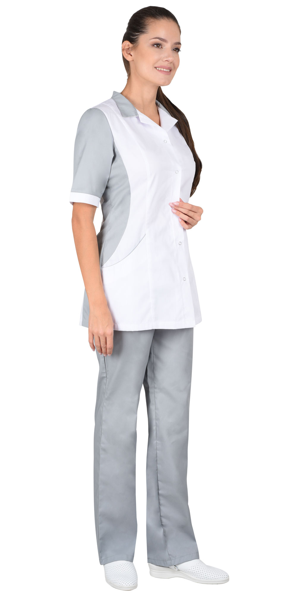 Костюм "ИОНА" женский: куртка, брюки, белый с серым (ЧЗ) ( 80-84/158-164)