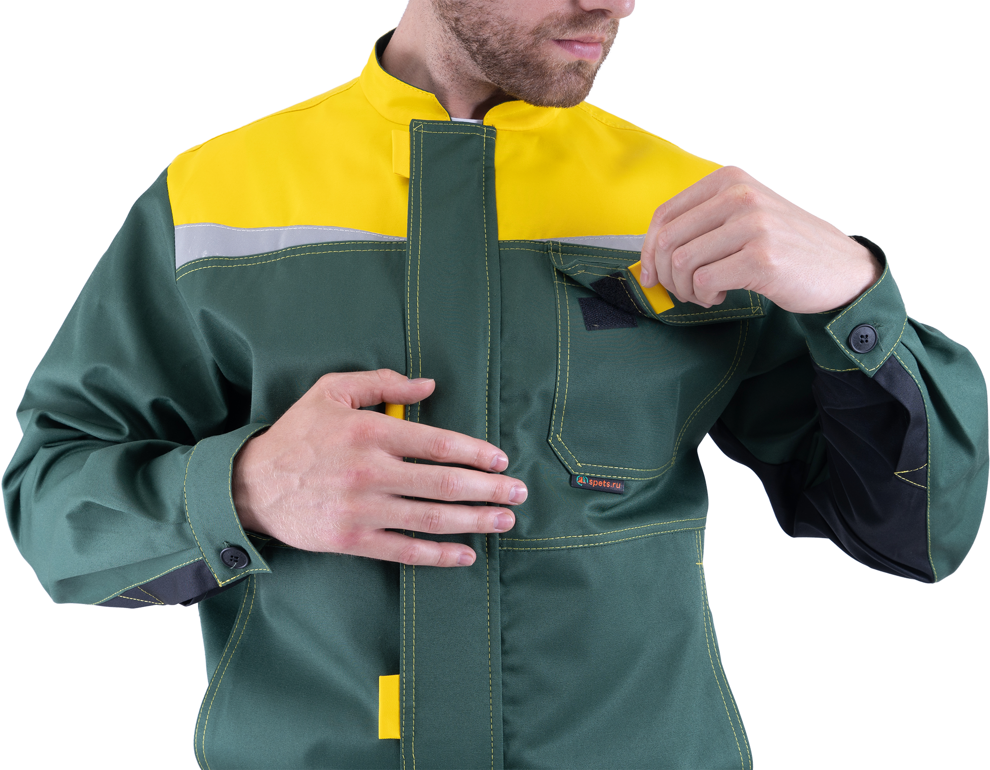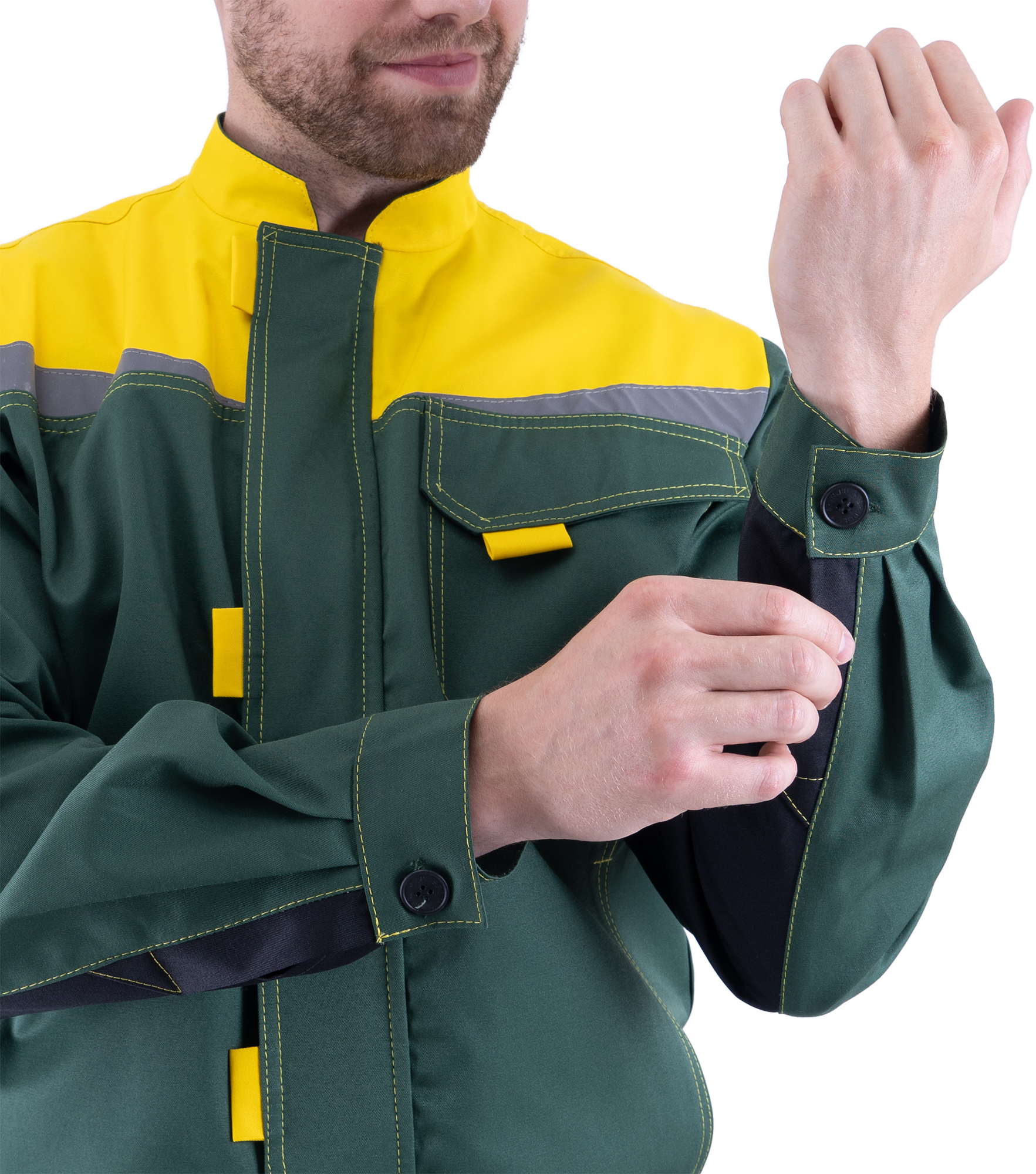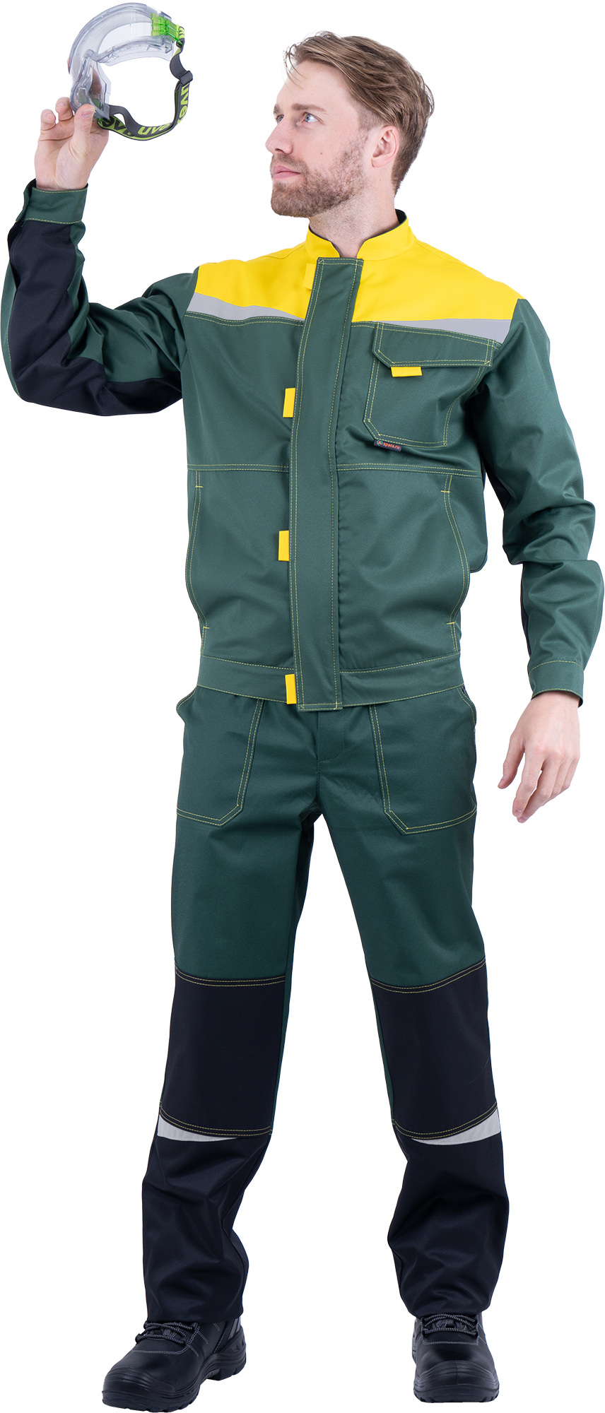 Костюм КМ-10 ЛЮКС летний, зеленый-желтый (Куртка+полукомбинезон) (ЧЗ) (120-124/170-176)