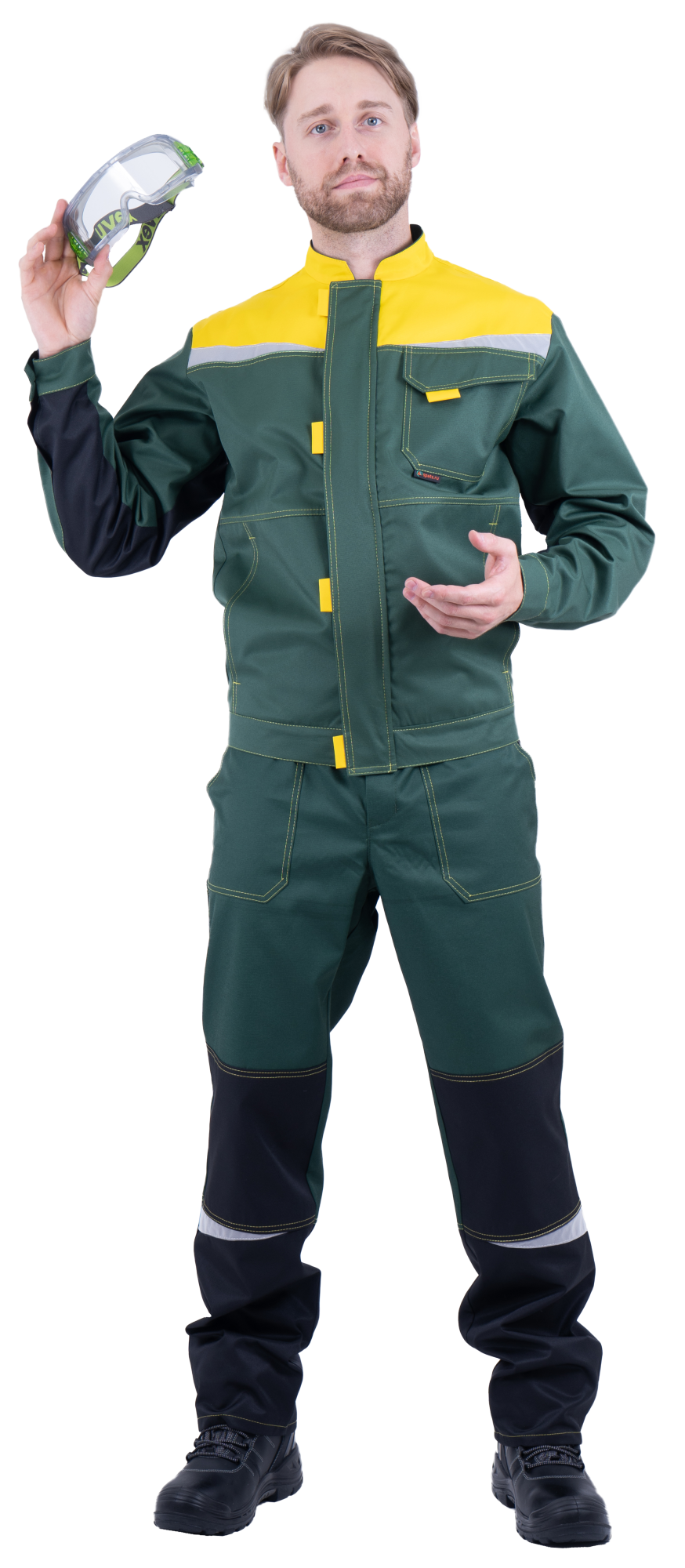 Костюм КМ-10 ЛЮКС летний, зеленый-желтый (Куртка+полукомбинезон) (ЧЗ) (120-124/182-188)