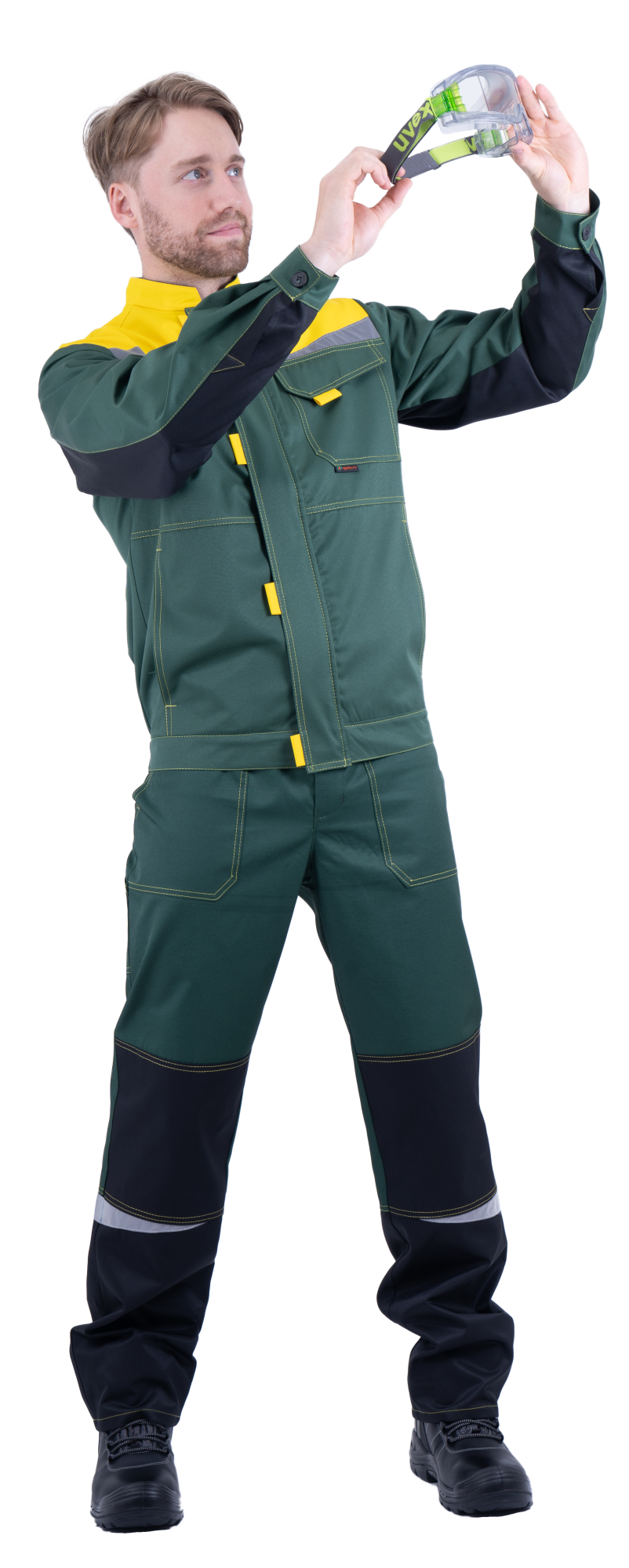 Костюм КМ-10 ЛЮКС летний, зеленый-желтый (Куртка+полукомбинезон) (ЧЗ) (104-108/170-176)