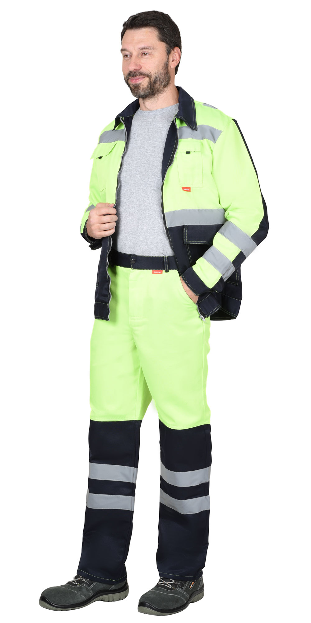 Костюм "МАГИСТРАЛЬ-ЛЮКС" : куртка, брюки неоновый с синим и СОП (ЧЗ) ( 96-100/170-176)