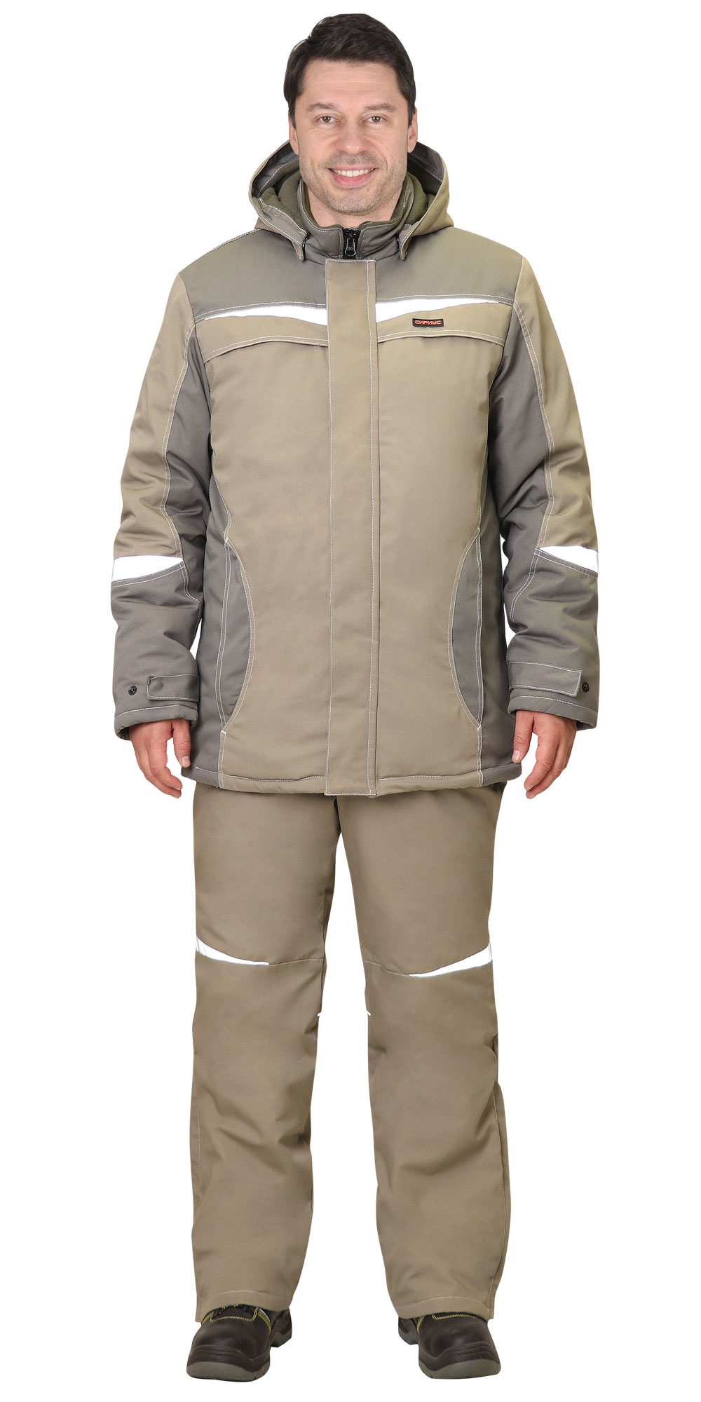 В костюме предусмотрены фигурные светоотражающие элементы (СОП) обеспечивающие безопасность работы в условиях пониженной видимости.
