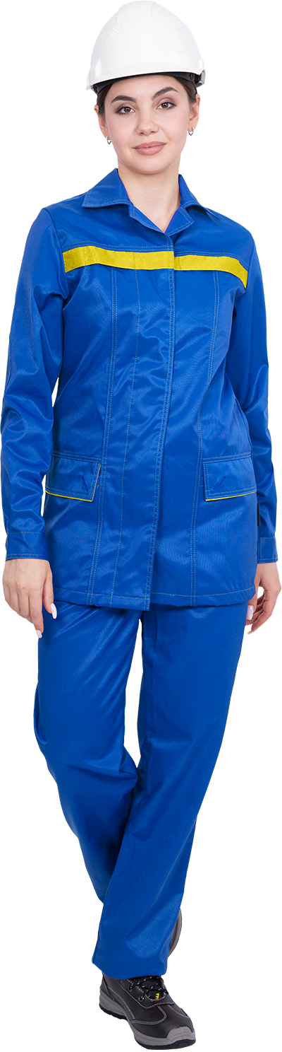 Костюм ПРЕМЬЕРА ЛЮКС летний, женский, куртка/брюки, василёк КОС 579 (ЧЗ) (120-124/158-164)