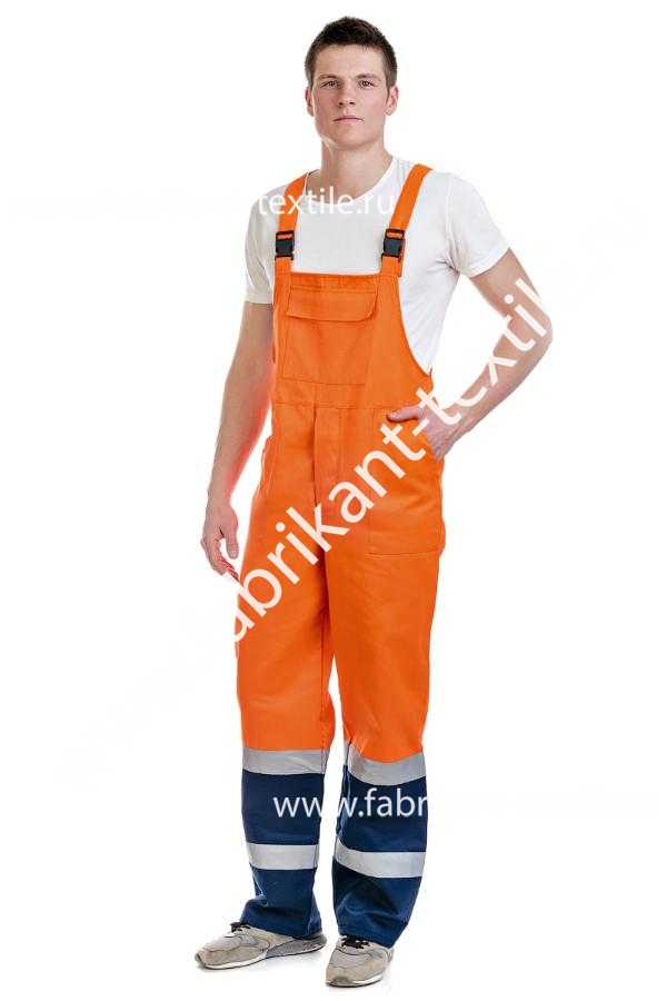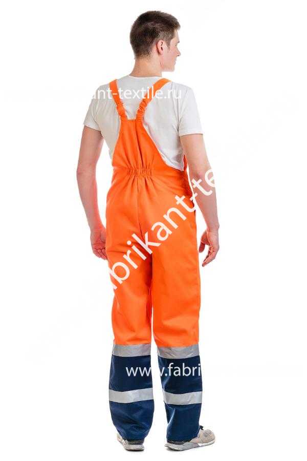 Полукомбинезон с потайной застежкой на пуговицы в переднем шве с двумя накладными и одним нагрудным карманом; бретелями, частично состоящими  из эластичной ленты, застегивающимися на фастексы, двумя полосами СОП шириной 5 см.