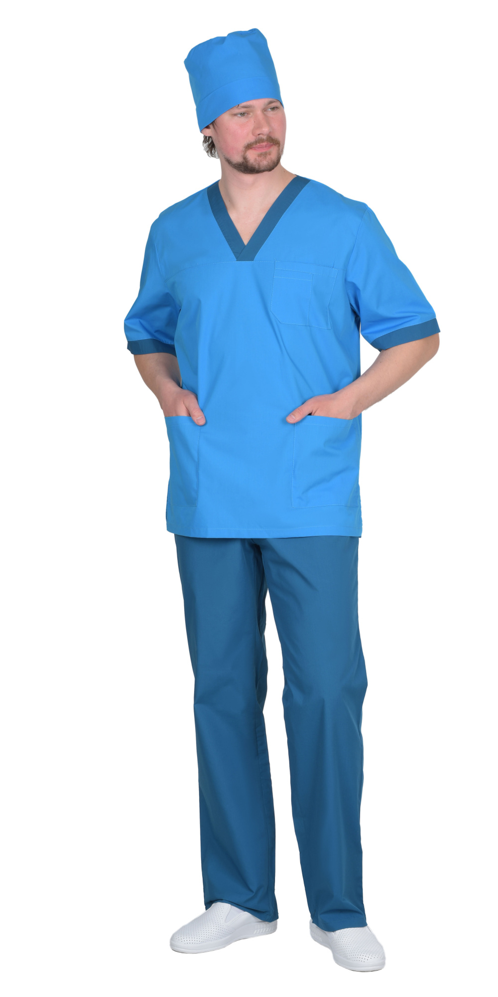 Костюм "Реал" мужской: куртка, брюки, колпак светло-синий с бирюзовым (ЧЗ)
