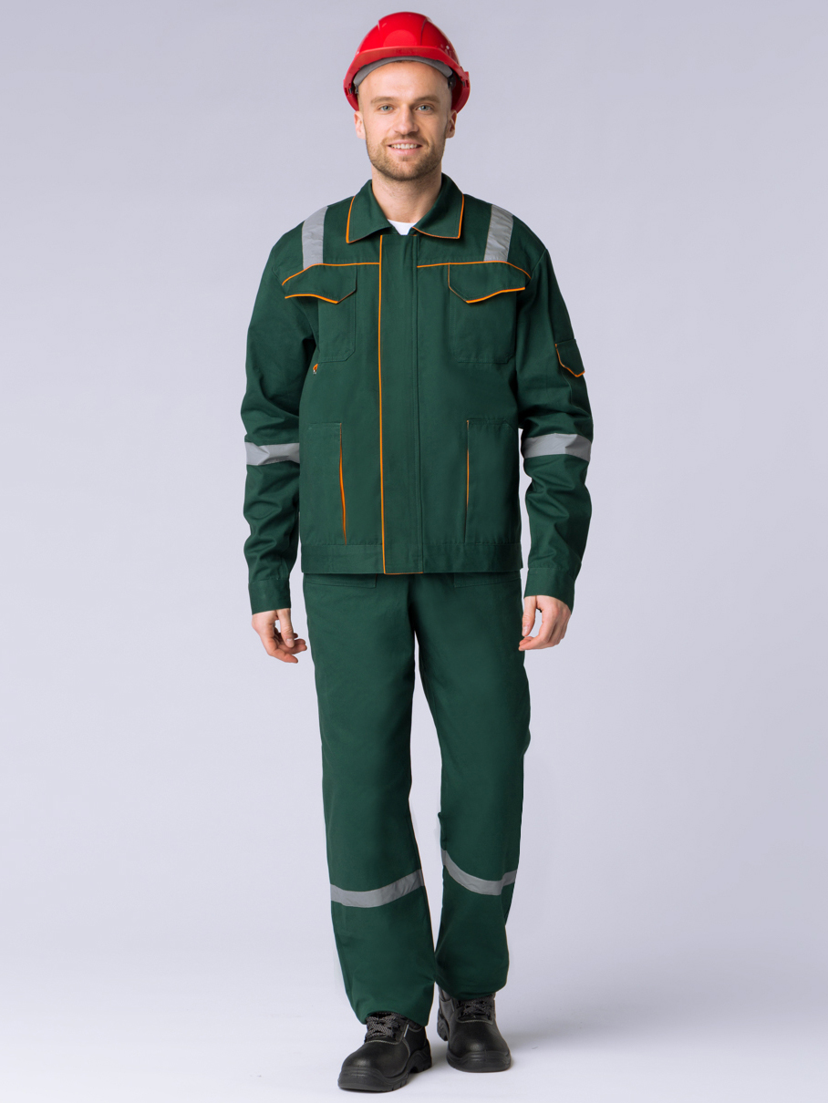 Костюм Респект (тк.Саржа,250) брюки, т.зеленый/оранжевый ТД САМО (ЧЗ) (128-132/170-176)