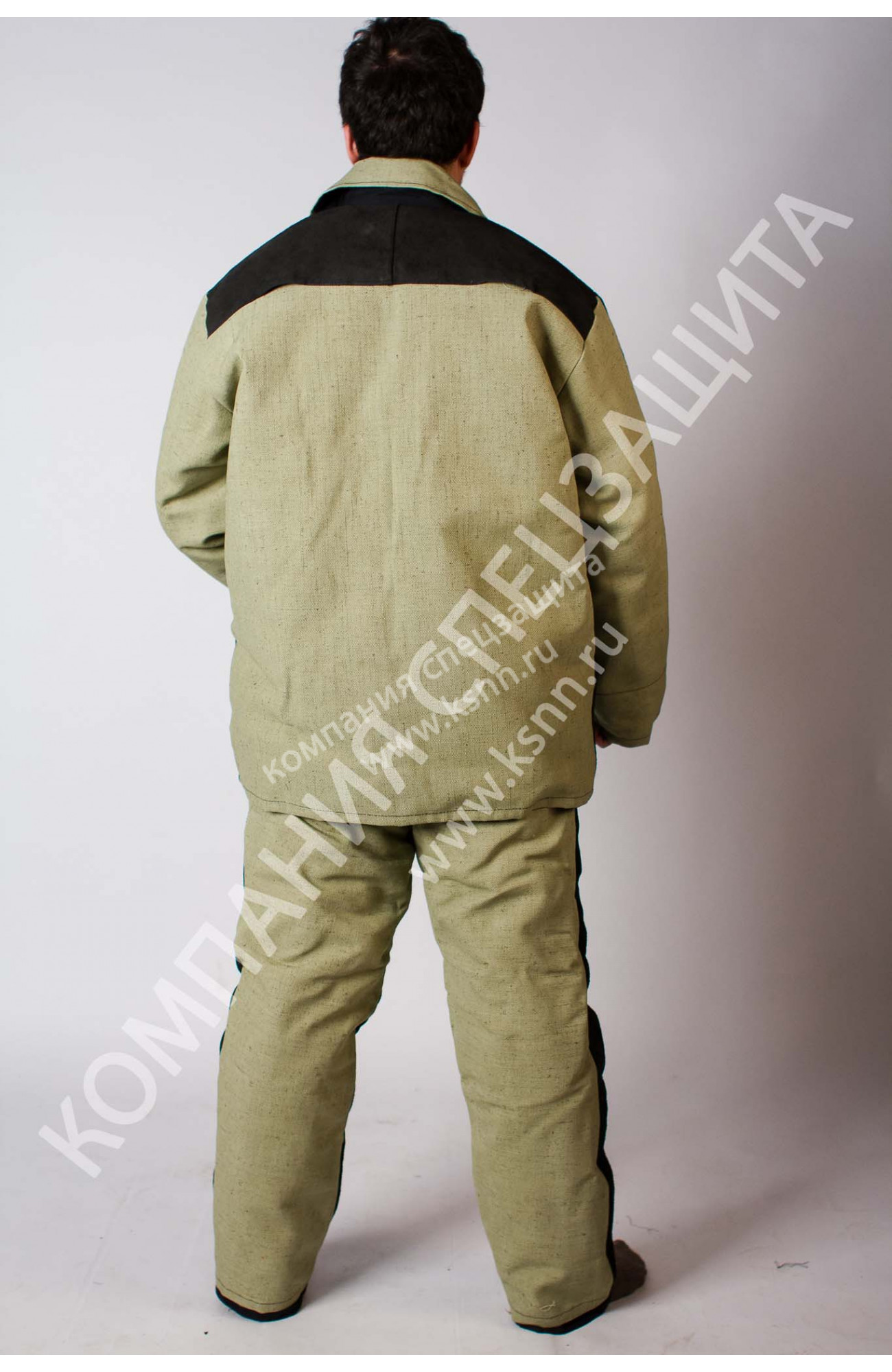 -Костюм комбинированный из спилка и парусины полульняной, состоит из куртки, брюк и пристегивающейся утепленной подкладки.