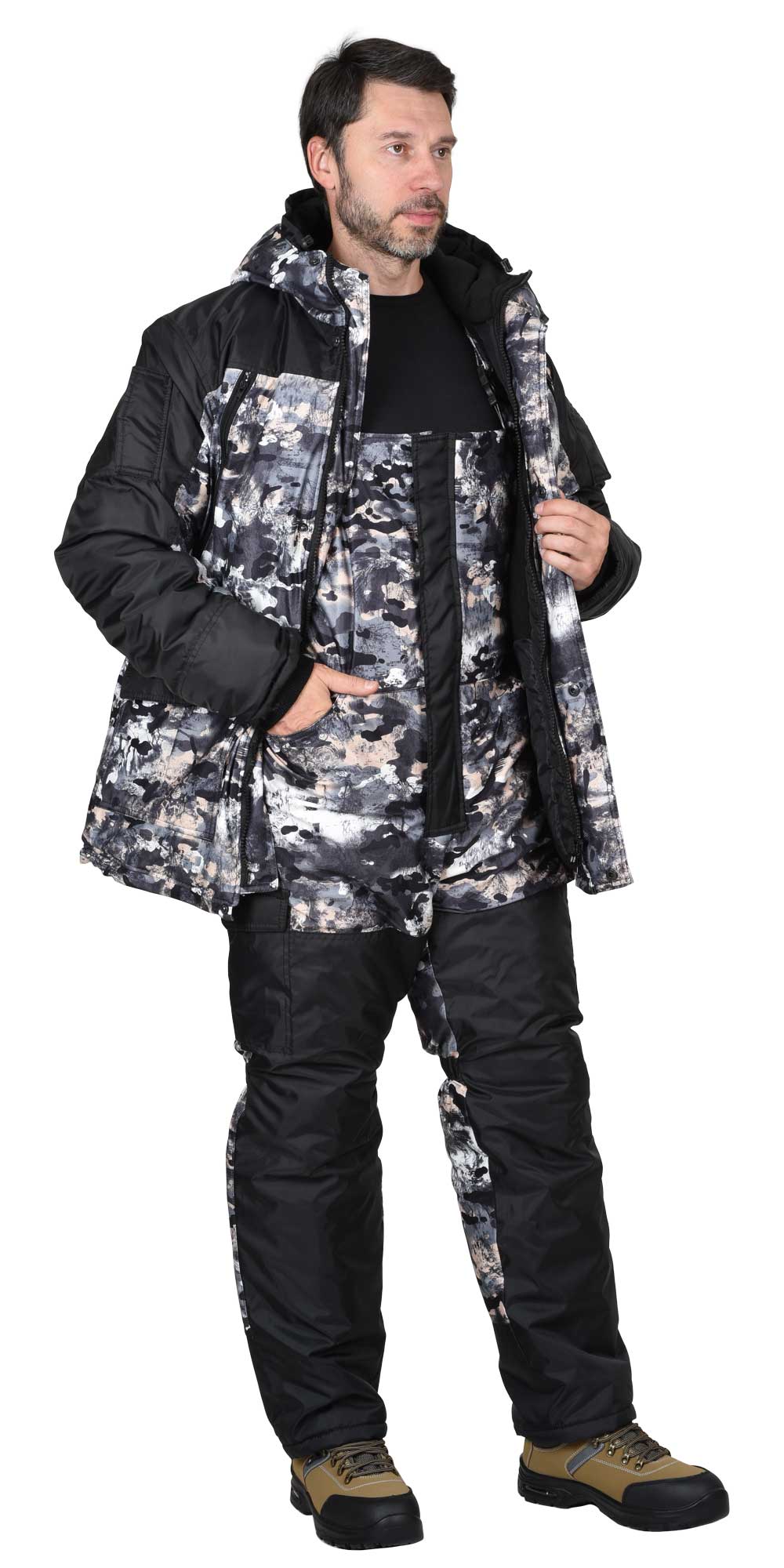 Утеплитель: Синтепон - 150 г/м2, в куртке - 3 слоя (итого 450 г/м2), в п/к - 2 слоя (итого 300 г/м2).