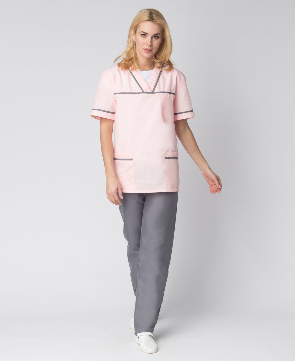 Стильный женский медицинский костюм «Ирис» разработан для сотрудниц медицинских учреждений, салонов красоты, массажных кабинетов или стоматологий. Костюм медицинский женский состоит из двух предметов: блузка + брюки женские. Спецодежда изготовлена в соответствии с ГОСТ, надежно защищает от общих производственных загрязнений. Костюм выполнен в нежных пудровых оттенках, замечательно сидит по фигуре. Прямая удлиненная блуза не стесняет движения, комфортна в работе. Для хранения мелочей предусмотрены вместительные карманы: боковые и нагрудный. Декоративный кант на карманах, горловине и кокетке придает костюму изысканный внешний вид. Рабочие брюки оснащены поясом из эластичной тесьмы для комфортной работы в течение длительного периода времени. Костюм изготовлен из легкой дышащей ткани, которая не выцветает и не садится после многократных стирок.