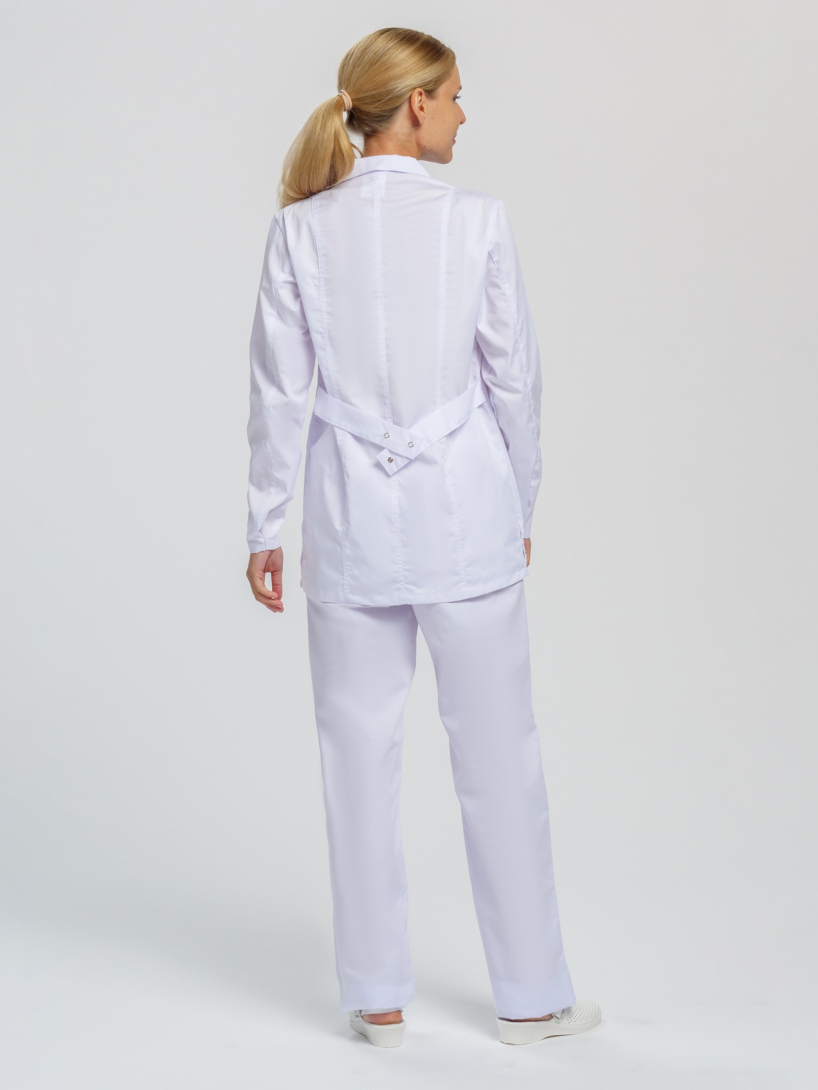 - регулировка объема талии вшивным поясом на спинке, фиксирующимся на одну кнопку