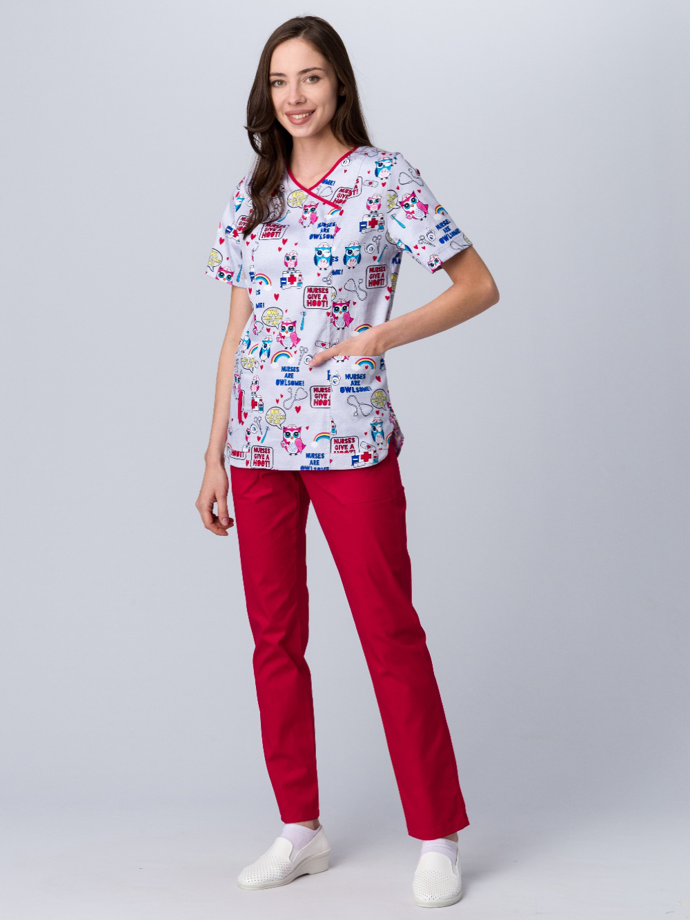 Костюм женский хирургический Модерн-001 (тк.Спандекс,175) MedLine, принт/красный (52)