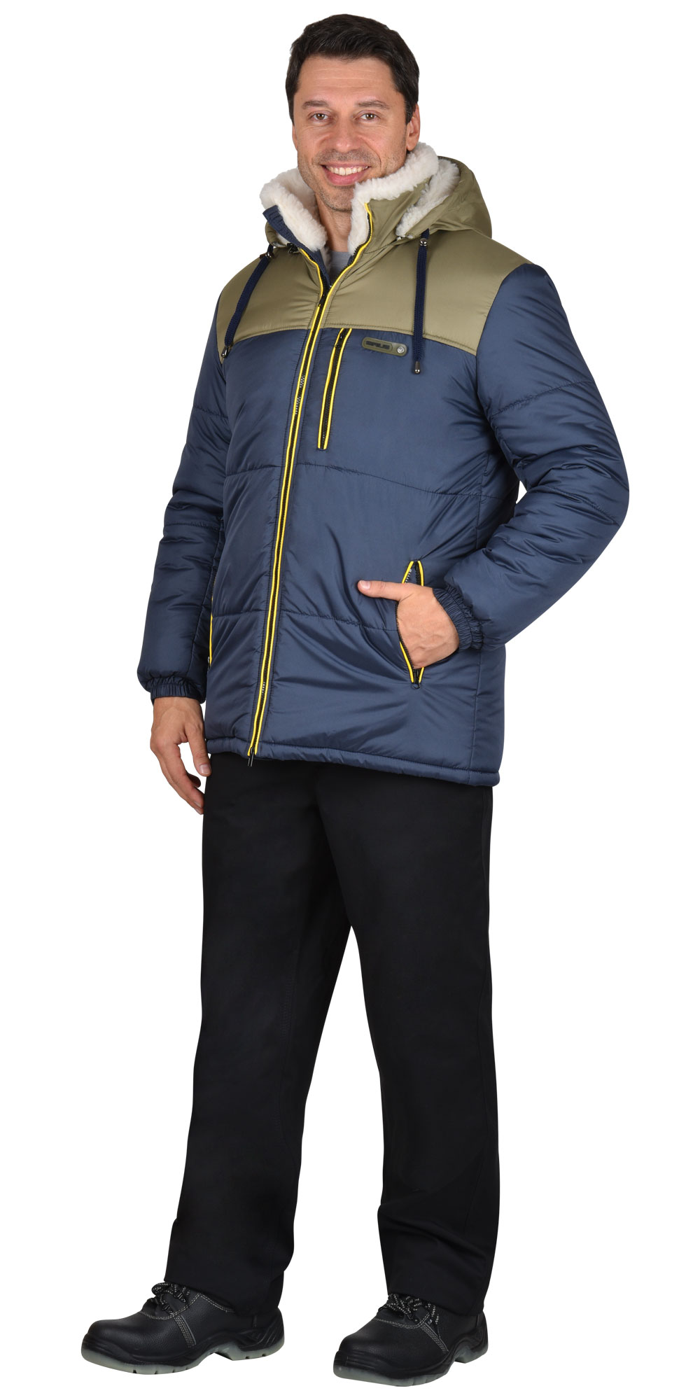 Куртка "ДРАЙВ" зимняя мужская, синяя с оливковым, подкладка иск. мех (ЧЗ)