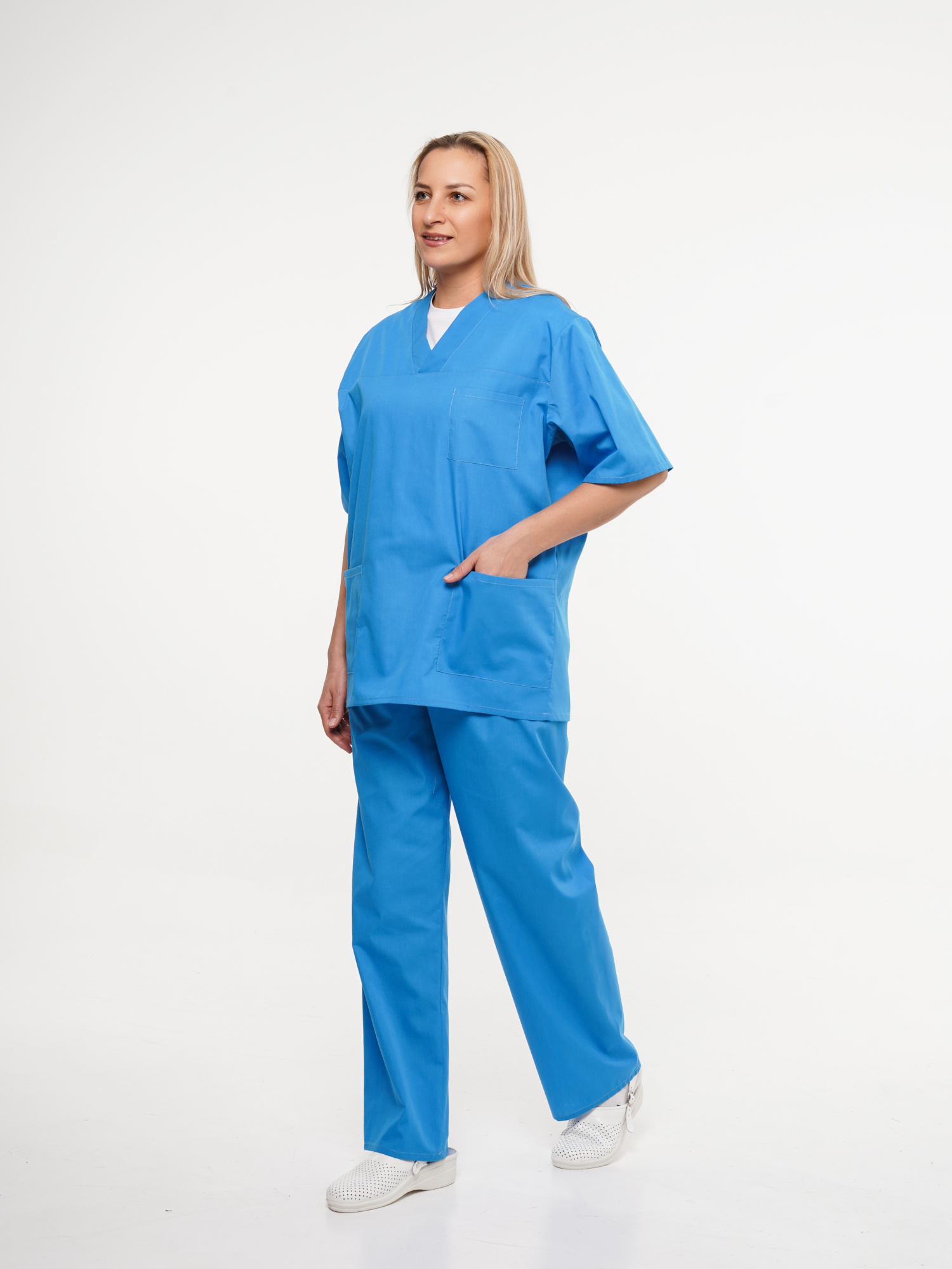 Блуза медицинская тк. ТИСИ голубой (ЧЗ) (120-124/158-164)
