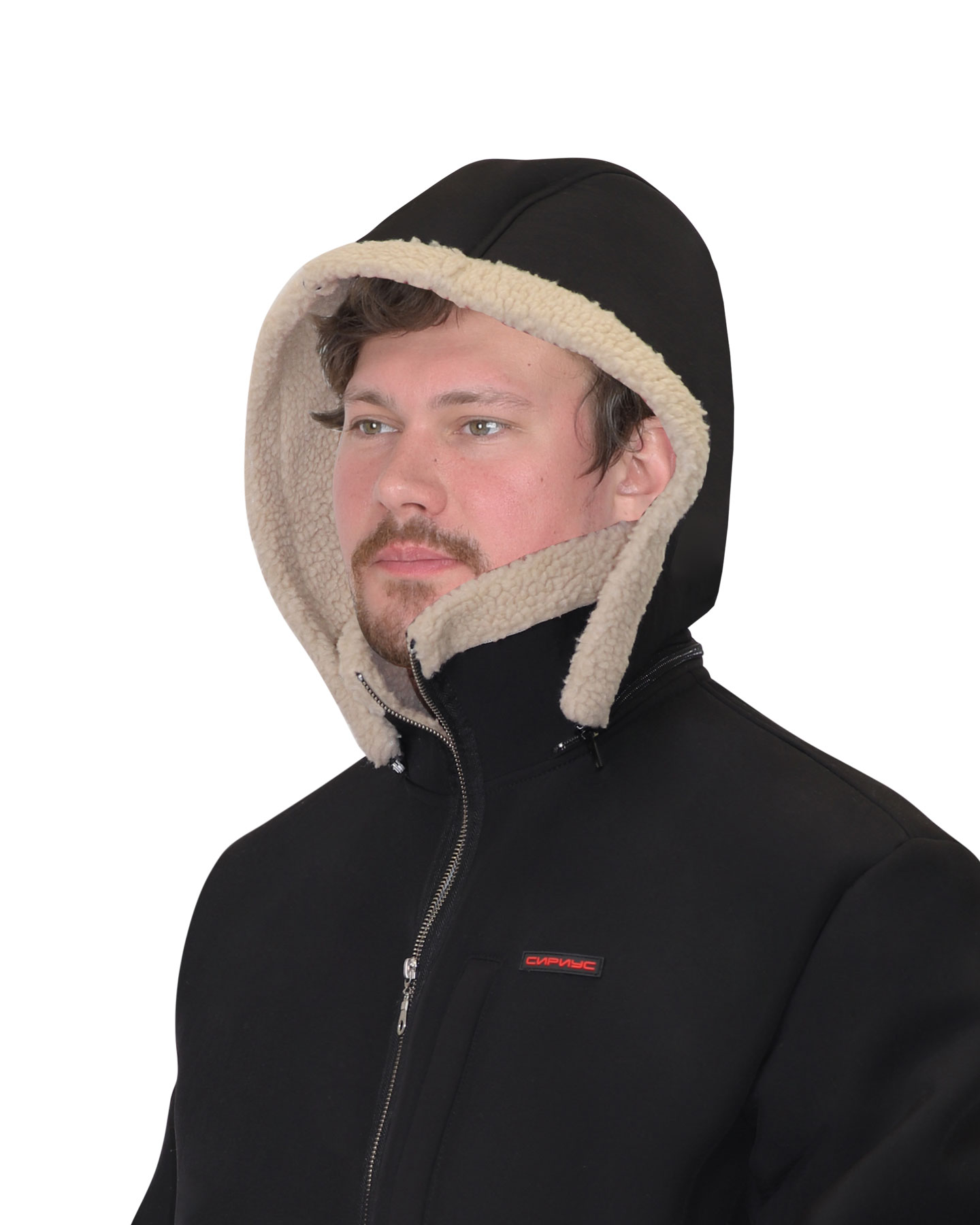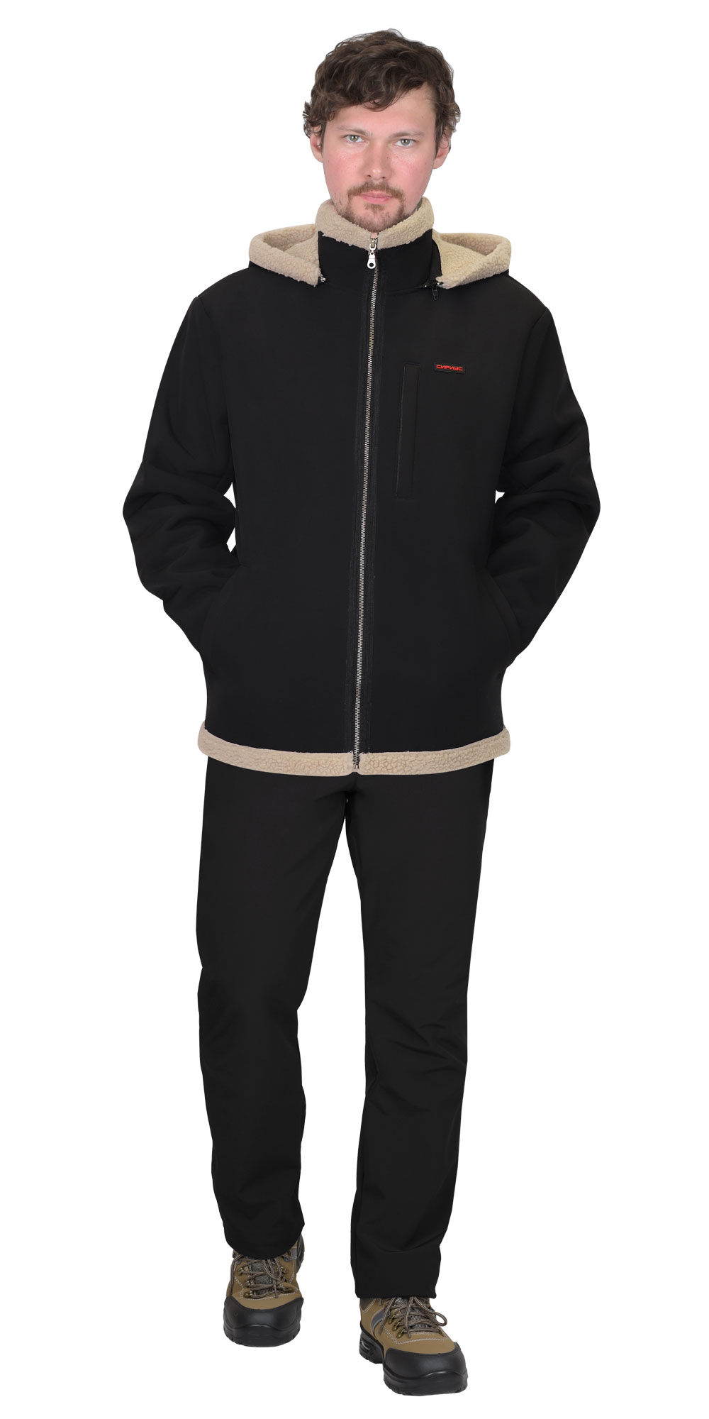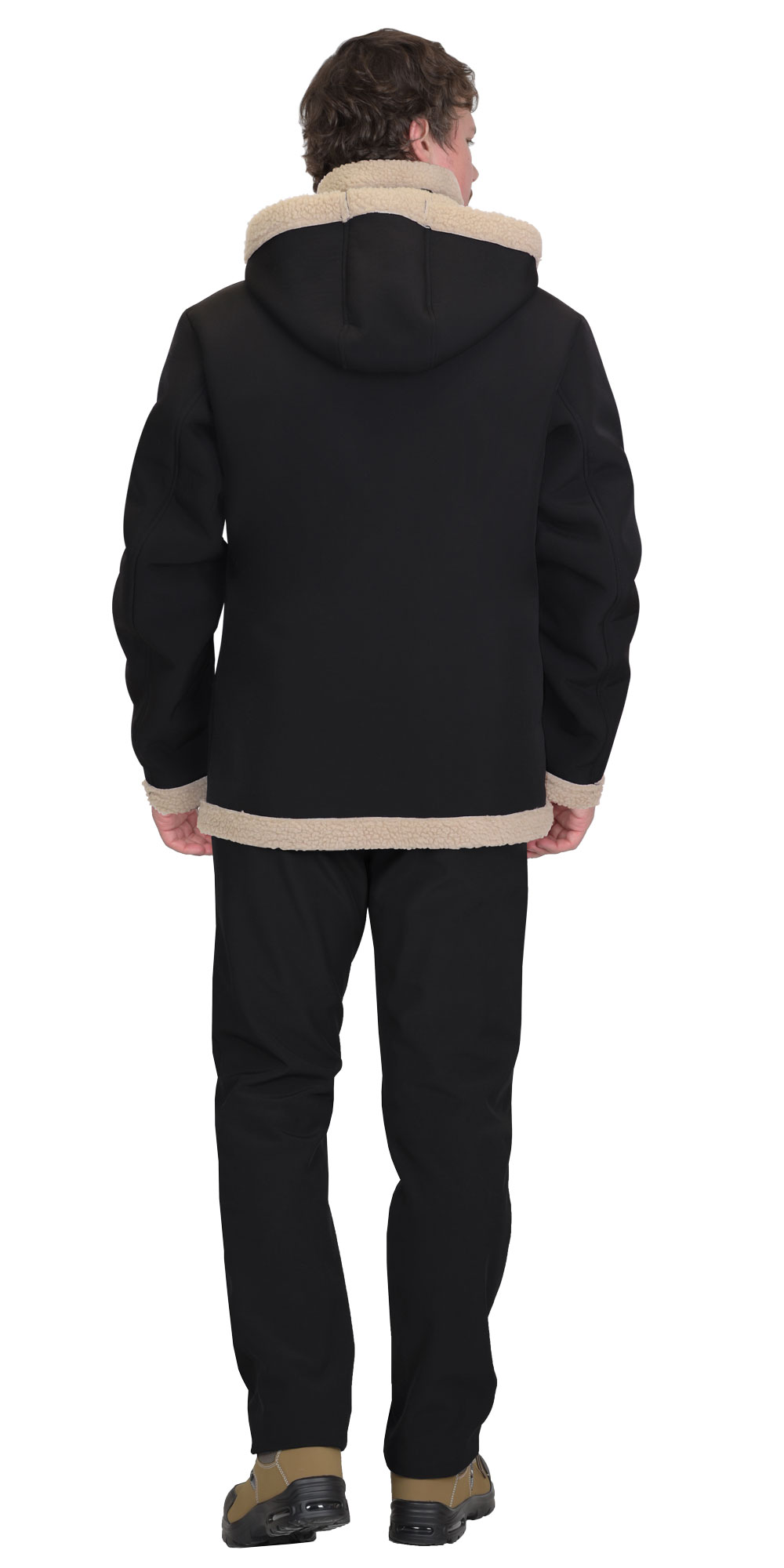 Ткань верха: Софтшелл+мех искусственный пл.420 г/м2 состав 100% п/э, цвет черный