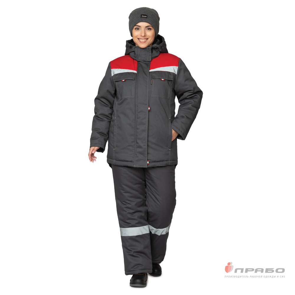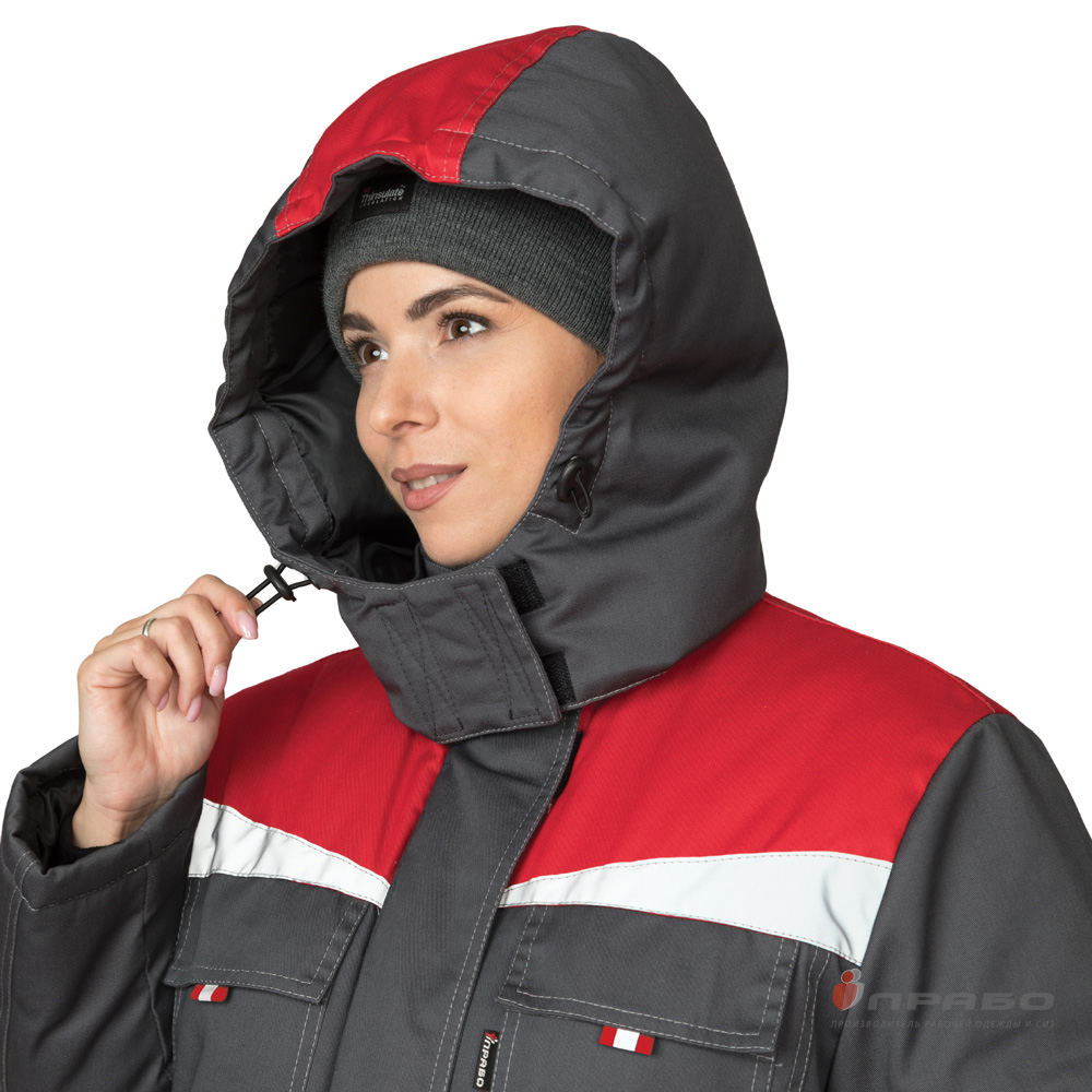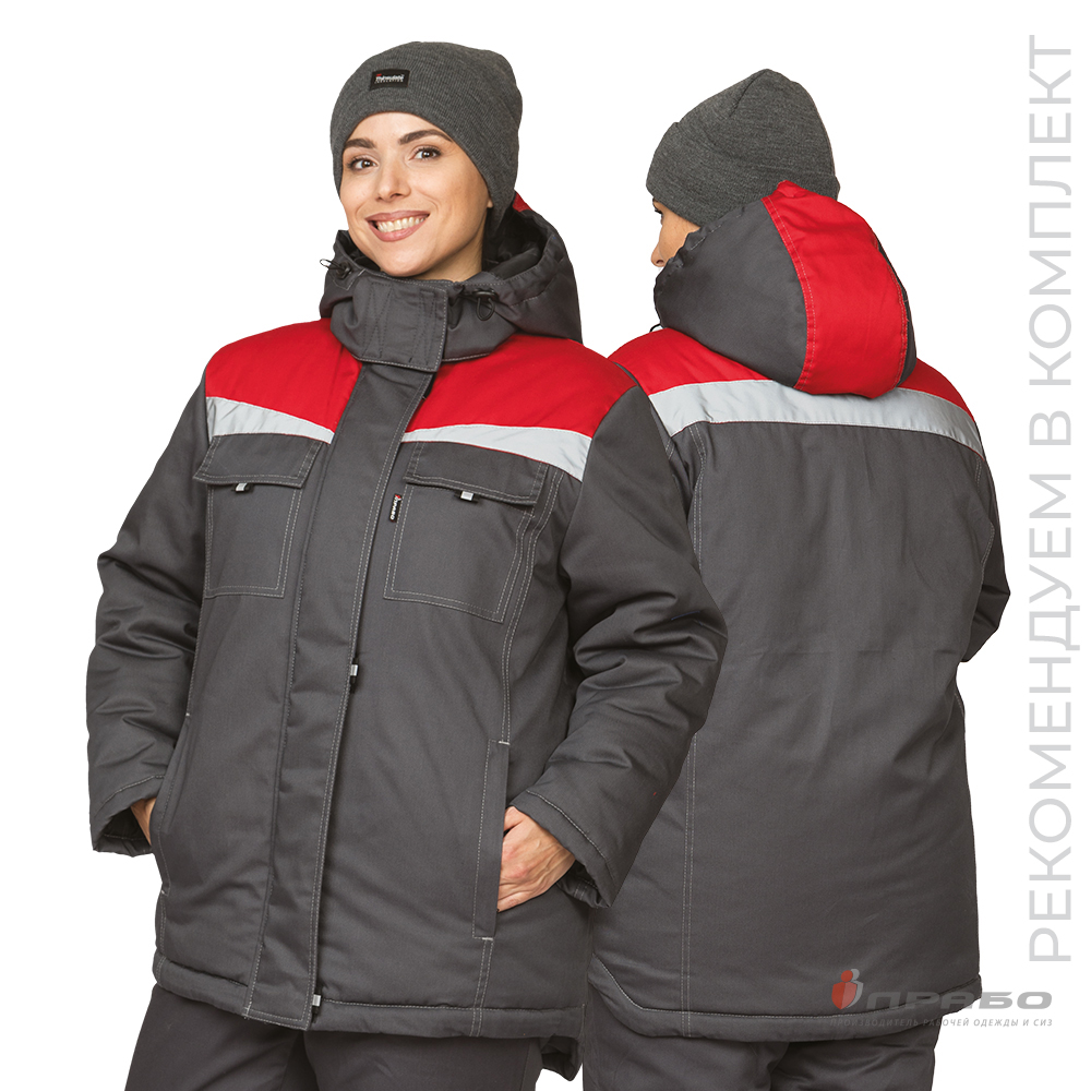 Куртка женская утеплённая "Профессионал" тёмно-серая/красная (ЧЗ) ПРАБО (120-124/158-164)