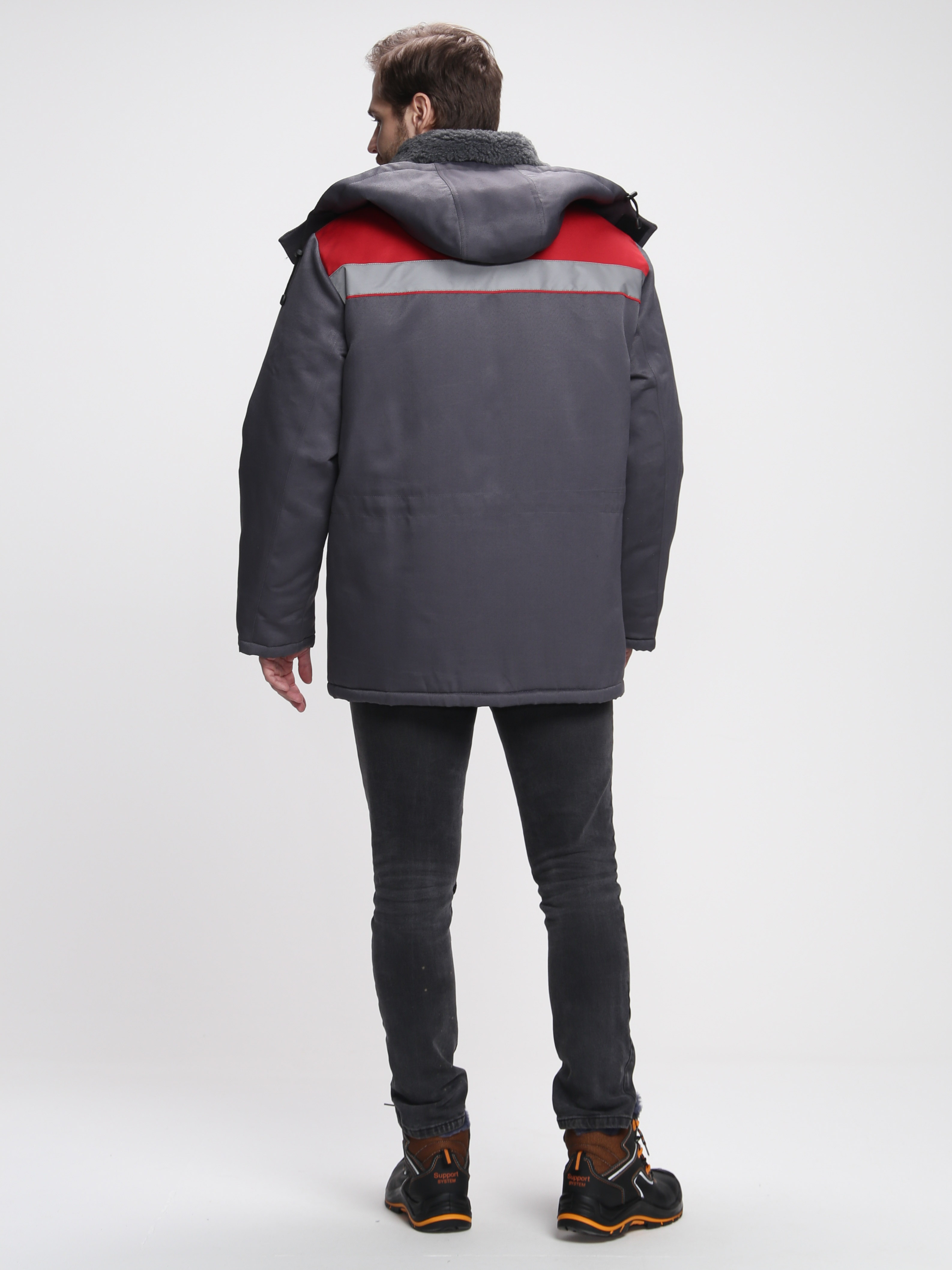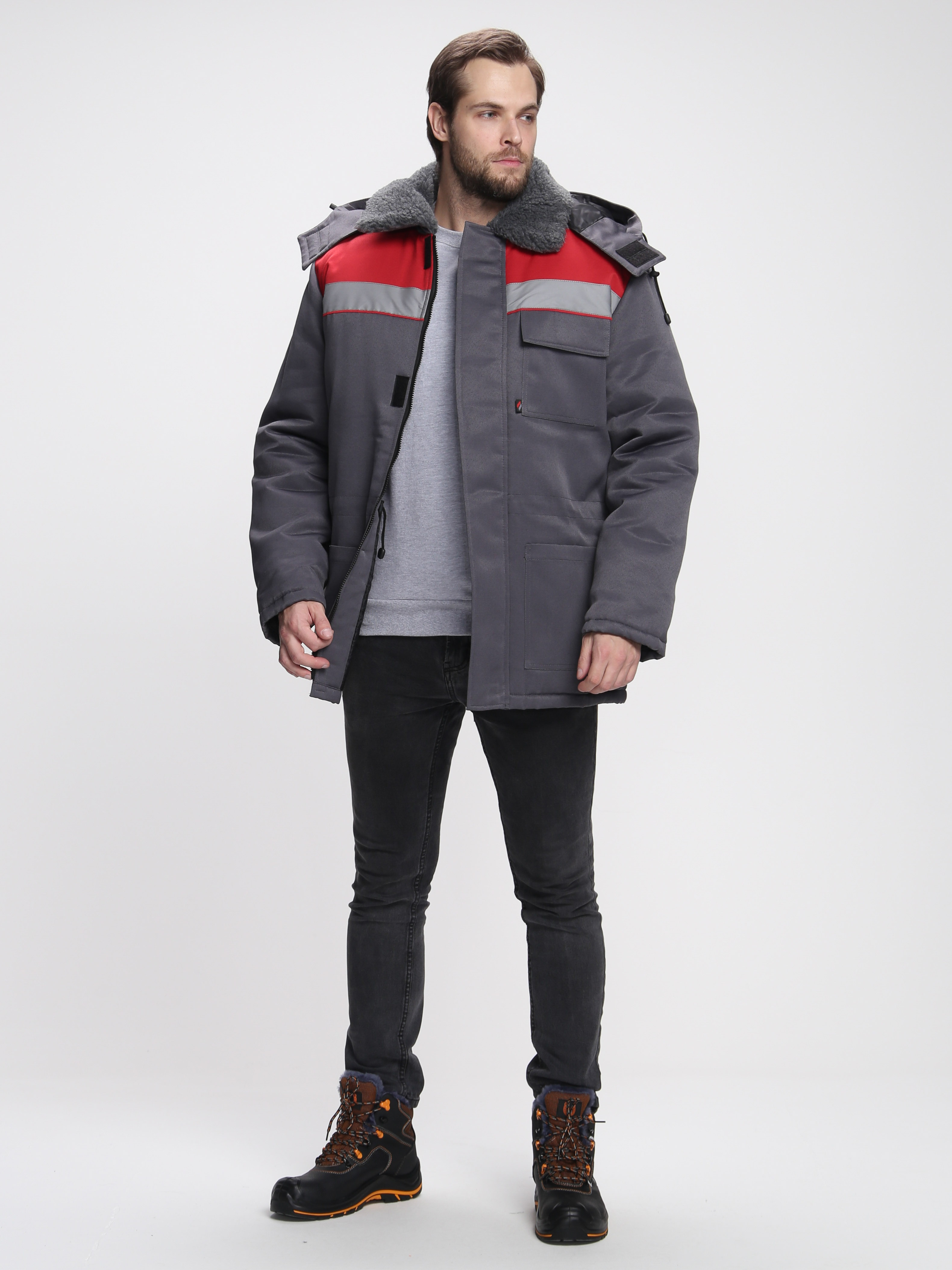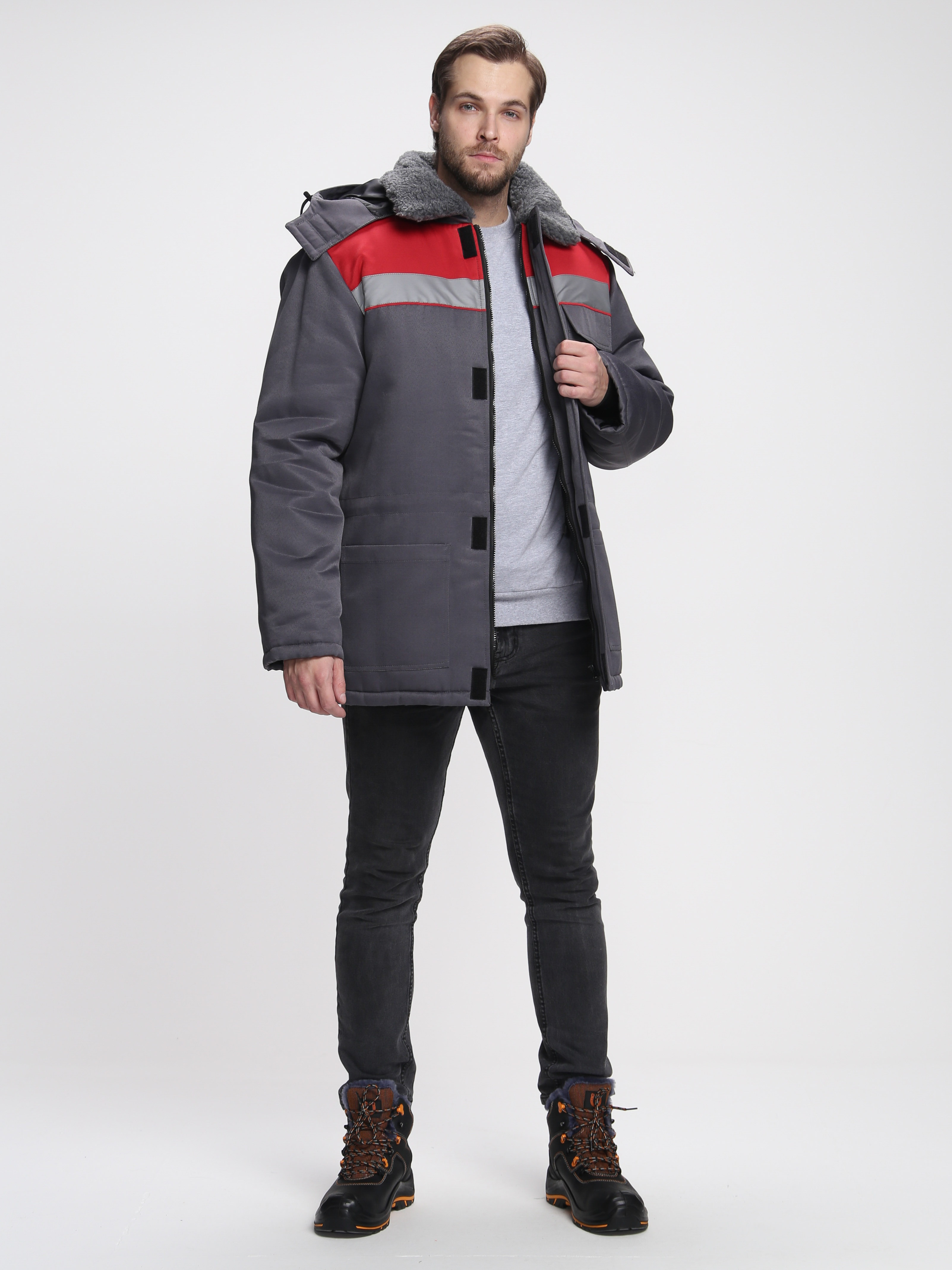 Куртка зимняя Бригада NEW (тк.Смесовая,210), т.серый/красный (ЧЗ) ( 88-92/182-188)