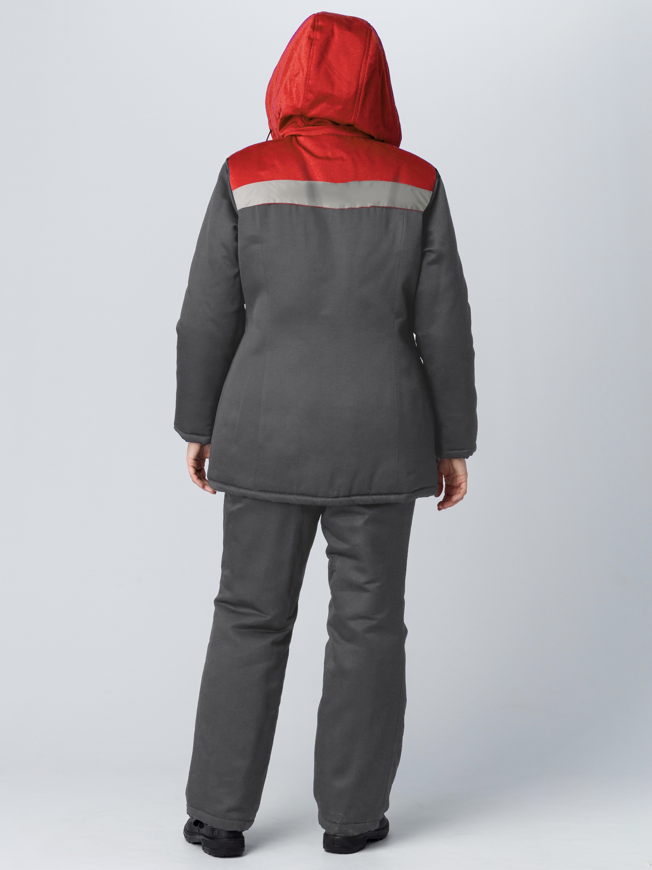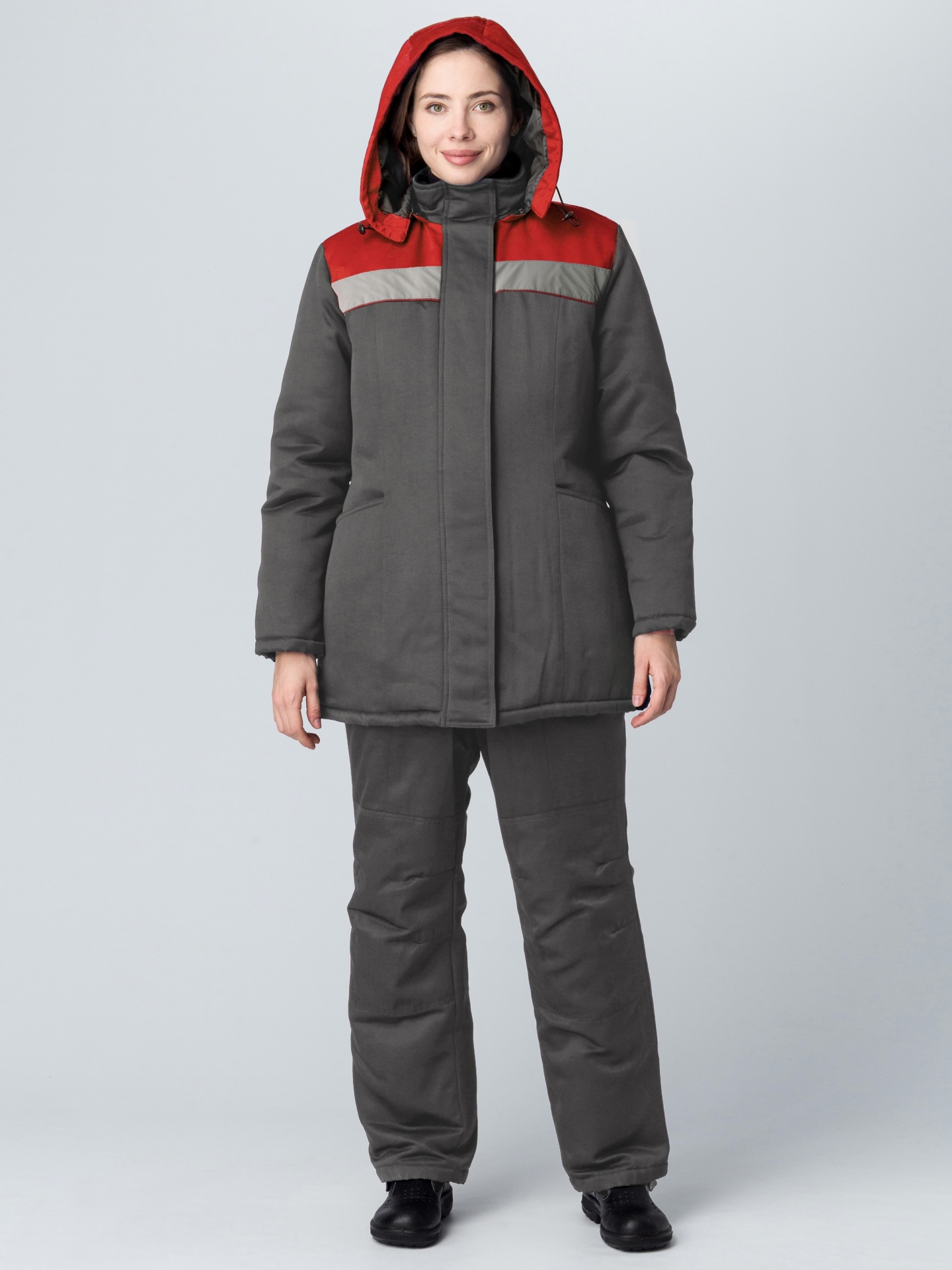 Куртка зимняя женская Вьюга (Кнейд) СОП (тк.Смесовая,210), т.серый/красный (ЧЗ) (120-124/182-188)