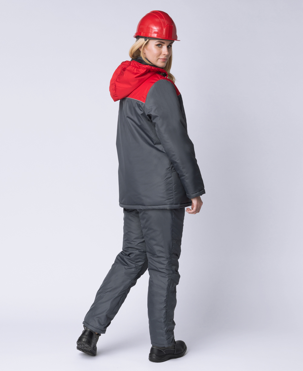 Куртка зимняя женская Снежана (Сакрин) (Дюспо), темно-серый/красный (ЧЗ) (120-124/182-188)