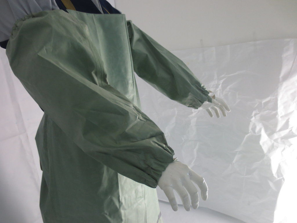 Отличная защита рук рабочего от масел, бензина, кислот содержанием до 80%, не говоря о воде. Шов нарукавников проклеен спец лентой. Имеют конусообразный вид, расширяющийся от кисти к плечу и стягиваются плотной резинкой.В узкой части имеется петля для одевания на большой палец, что не позволяет нарукавнику съезжать с руки. Изготовлены из прорезиненной ткани арт.  БЦК(зеленого цвета). Длина 30 +-7см