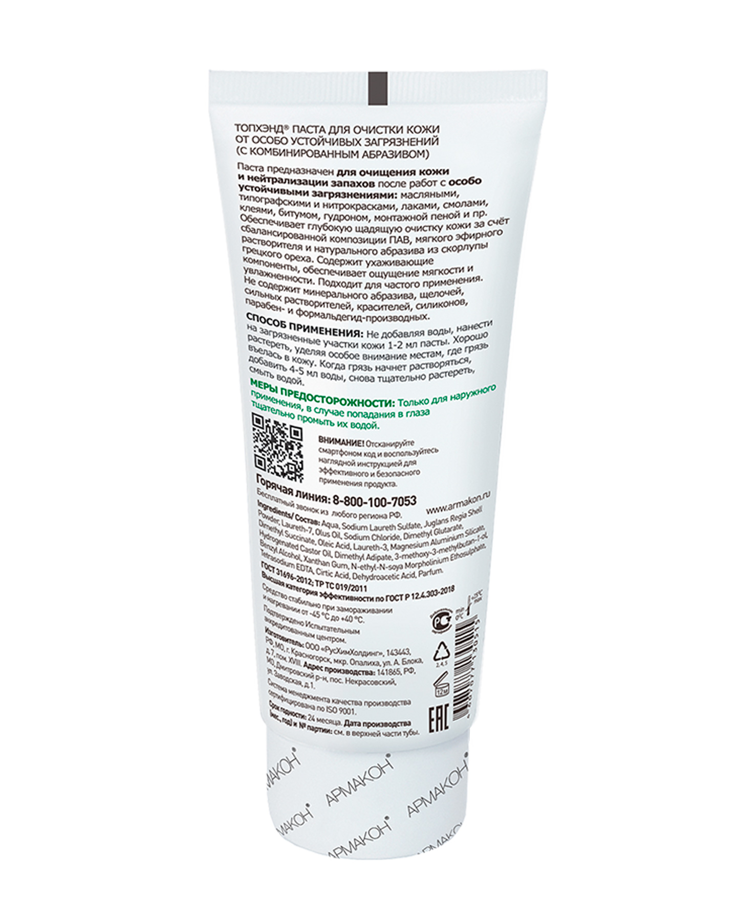 Не содержит минерального абразива, щелочей, сильных растворителей, красителей, силиконов, парабенов.