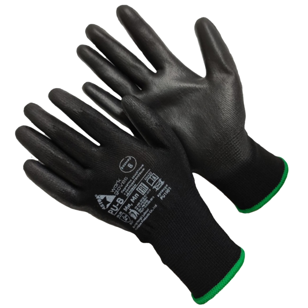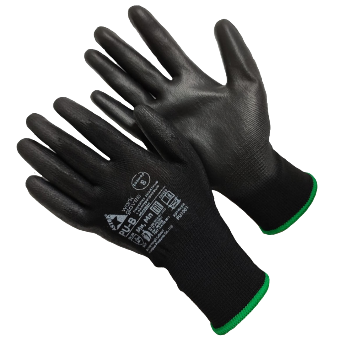 Перчатки Astra Pu-B из полиэстера черного цвета с полиуретановым покрытием (M (8))