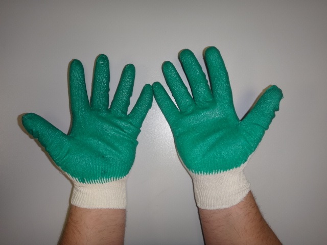 Перчатки х/б с латексным покрытием, зеленые