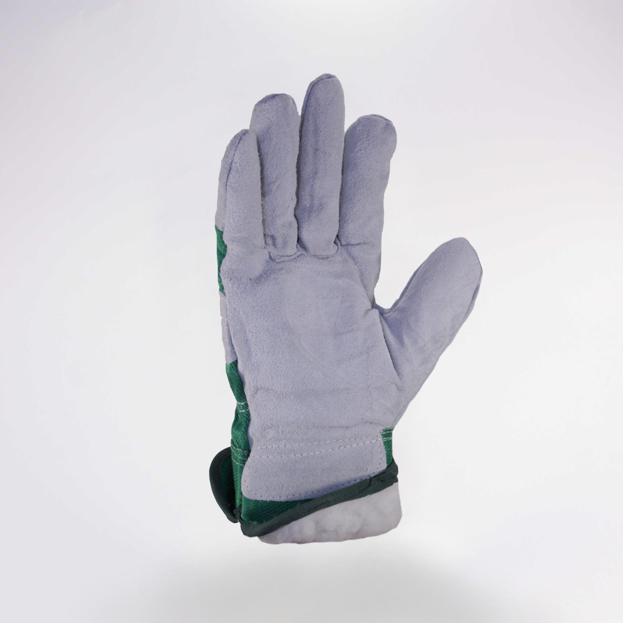 Перчатки спилковые комбинированные (зеленые) утепленные (иск. мех) Люкс