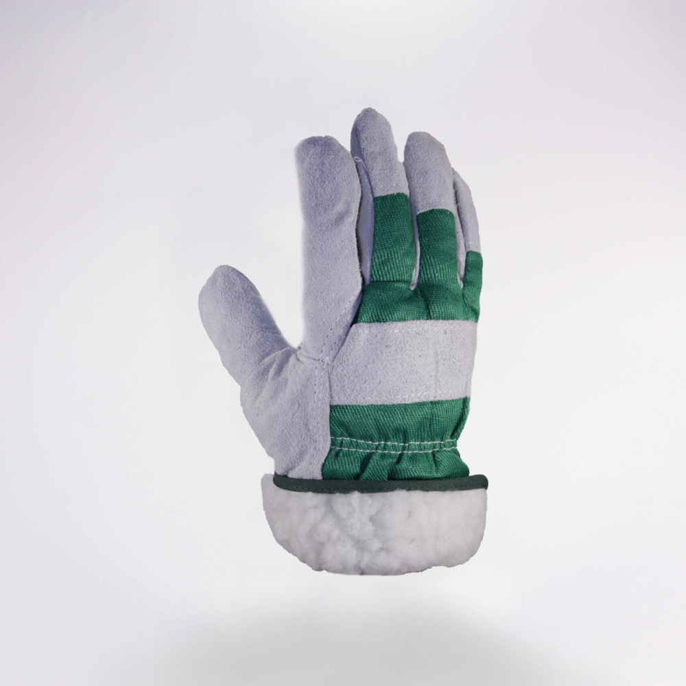 Перчатки спилковые комбинированные (зеленые) утепленные (иск. мех) Люкс Алтиор (Рос. сертификат)